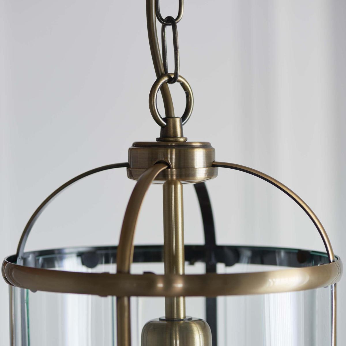 Beautifully crafted with an antique brass finish, this stunning Vogue Lambeth 1 Light Pendant features an adjustable drop combined with a metal framework and clear glass panels. This light is compatible with a dimmer switch, suitable for use with LED Lamps and available in other size/ finish options to complement an array of home decors.