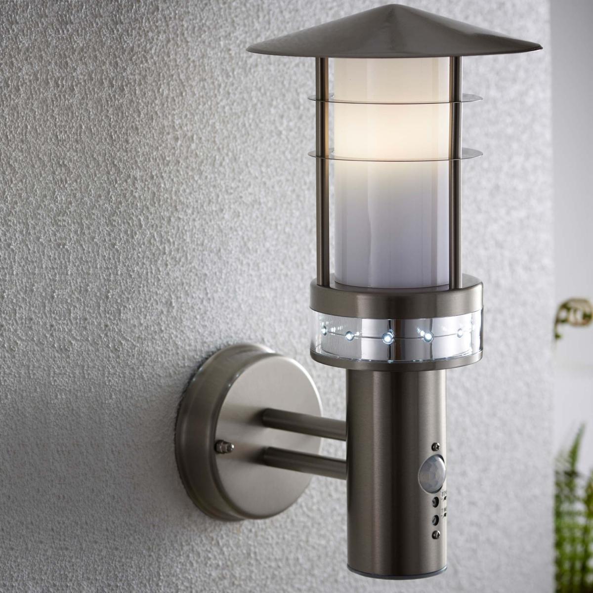 Bringing modern shapes and classic styles together, the Connor Outdoor PIR Wall Light brings an effortless and contemporary element to your outdoor space. With an IP44 rating, this lighting is suitable for outdoor and bathroom use, has a frosted shade for a subtle glow, and brushed stainless steel finish for a stylish tidy appearance.