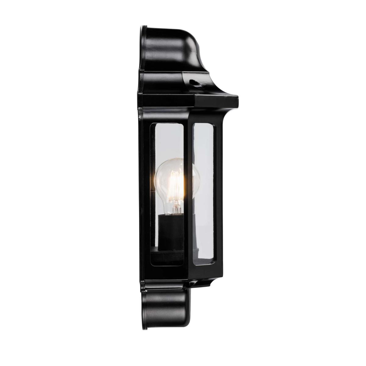 Light up the exterior walls of your house with this water resistant wall light in a traditional style. Suitable for outdoor and bathroom use with a IP44 rating, this dimmable light with a satin black finish has a classic yet durable style.