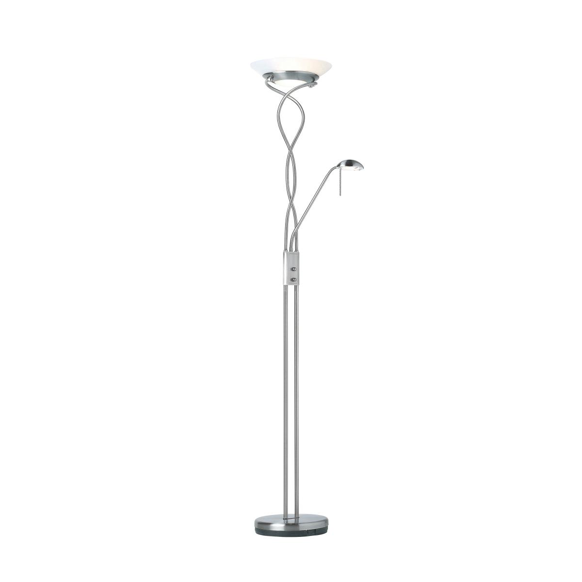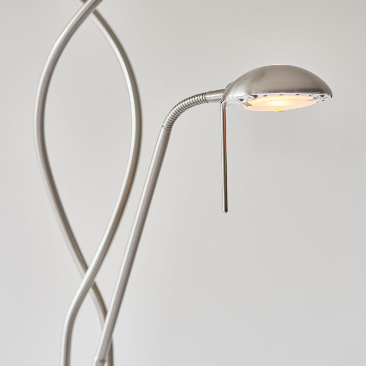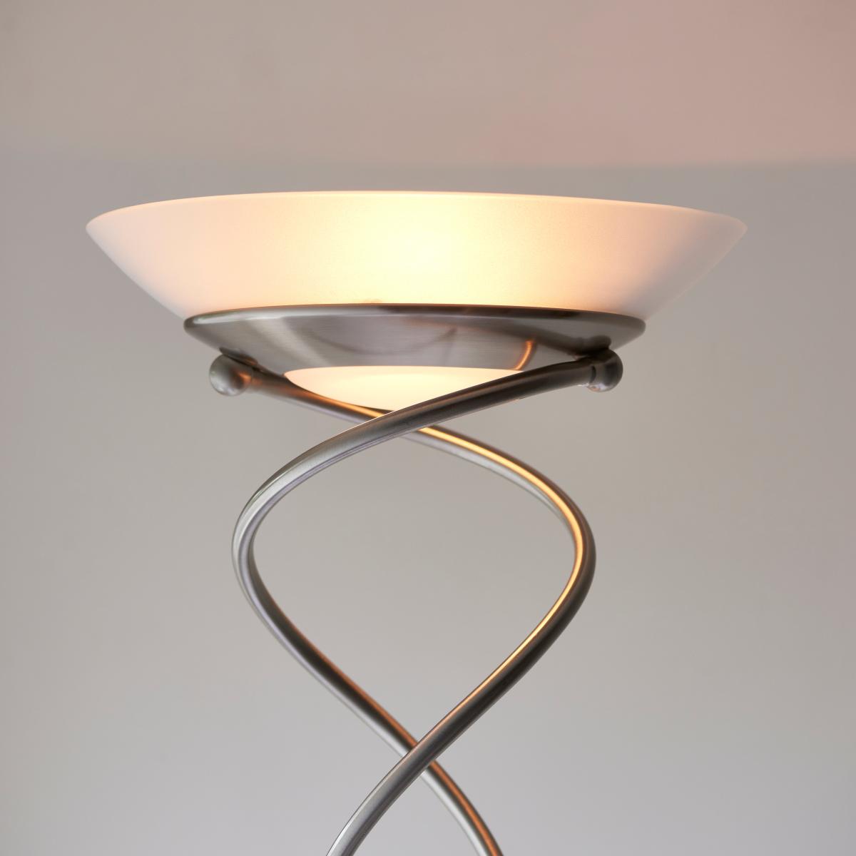 Convenient for your use, this floor lamp features a classic swirl design with a frosted glass uplighter with a fully directional flexible reading light arm and dual rotational dimmer switches to adjust the brightness to your desired level. Simply choose the light you wish to have on. This floor lamp is available in two colourways for you to choose from.