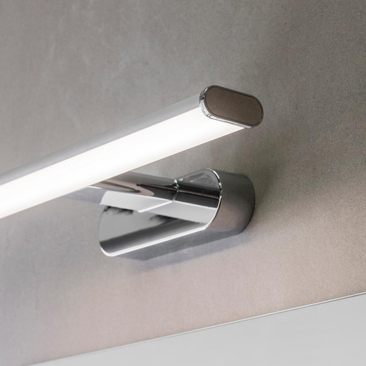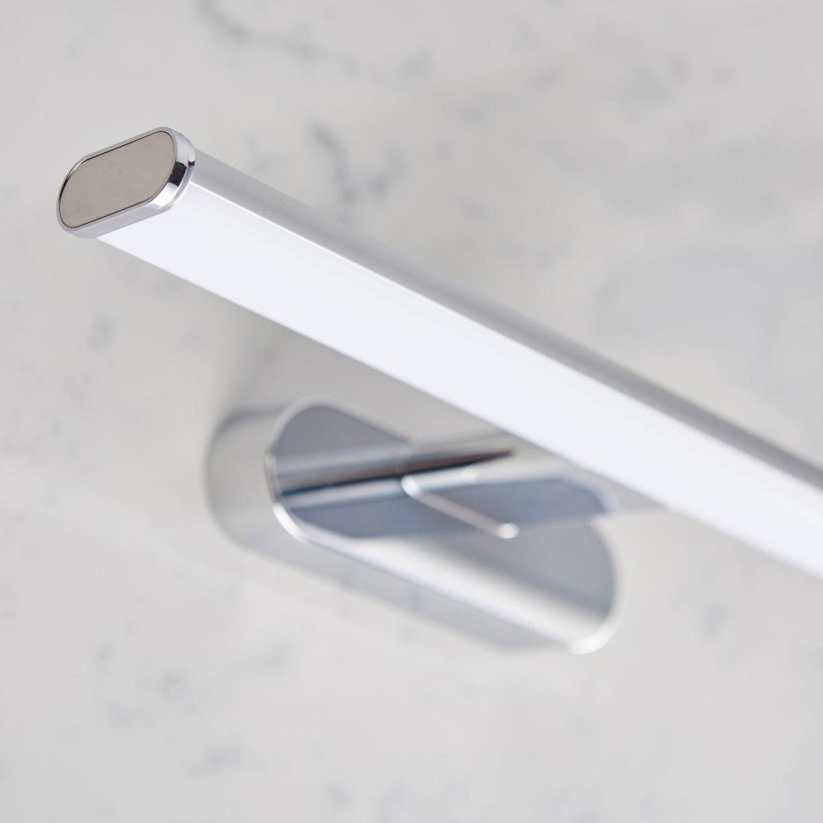 I love this bathroom wall light because of its sleek, modern design and chrome finish, which adds a contemporary touch to any space. It works particularly well in minimalist or industrial interiors, where clean lines and metallic accents are key. For styling tips, consider placing it above a large mirror in a neutral-toned bathroom to create a streamlined look, or pair it with matching chrome fixtures for a cohesive feel. Its bright LED light ensures effective illumination for daily routines, making it as practical as it is stylish. This piece is perfect for those looking to add a touch of sophistication while maintaining a functional, clutter-free environment.