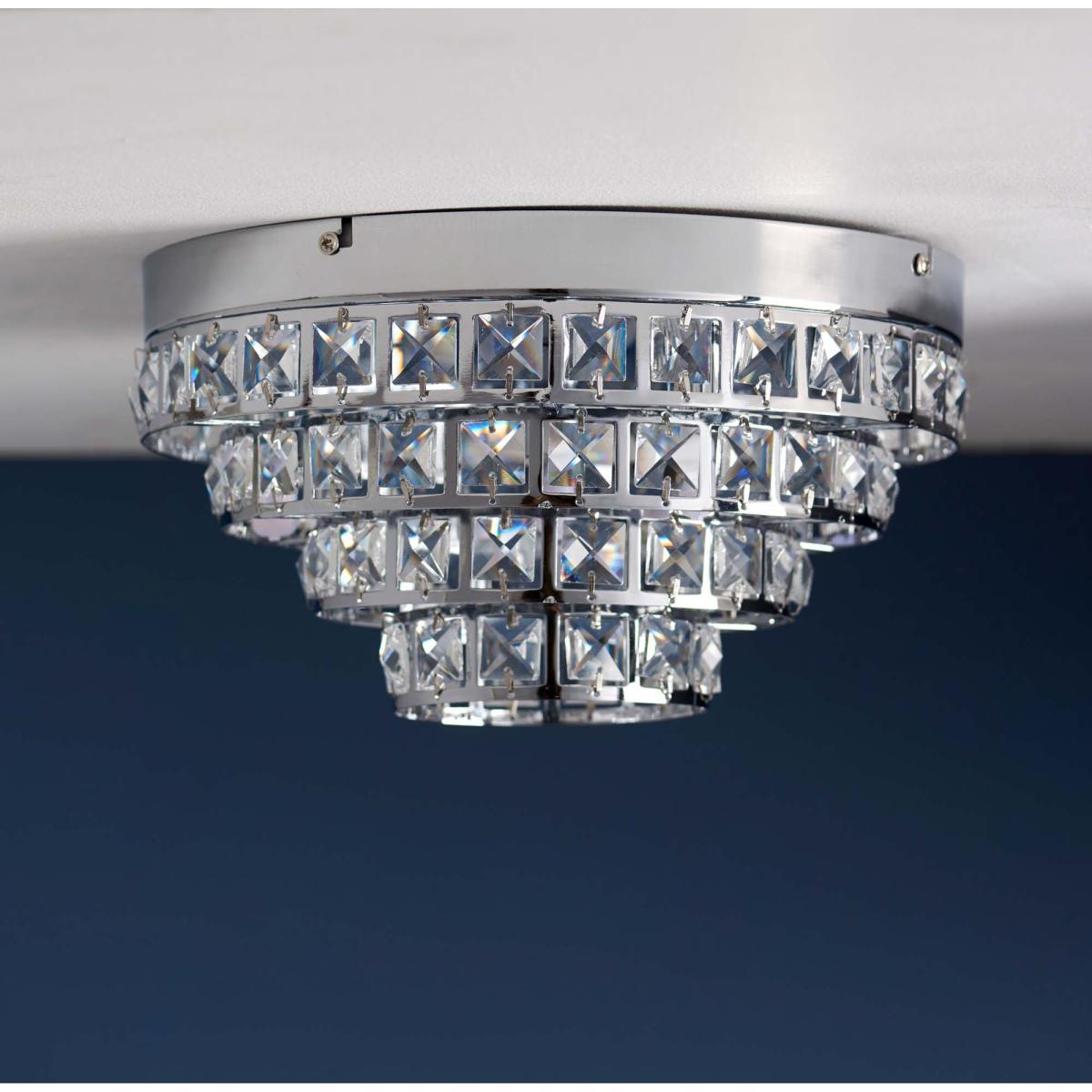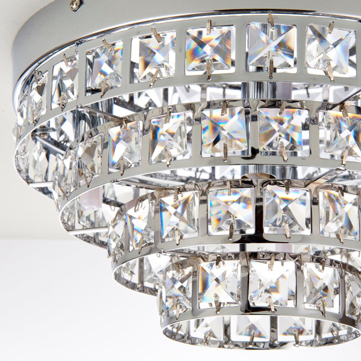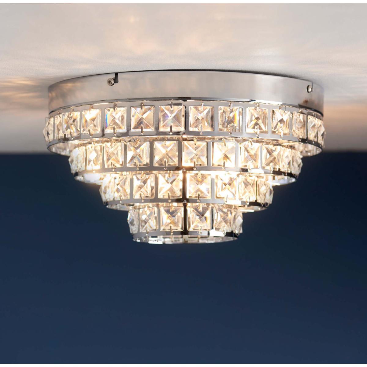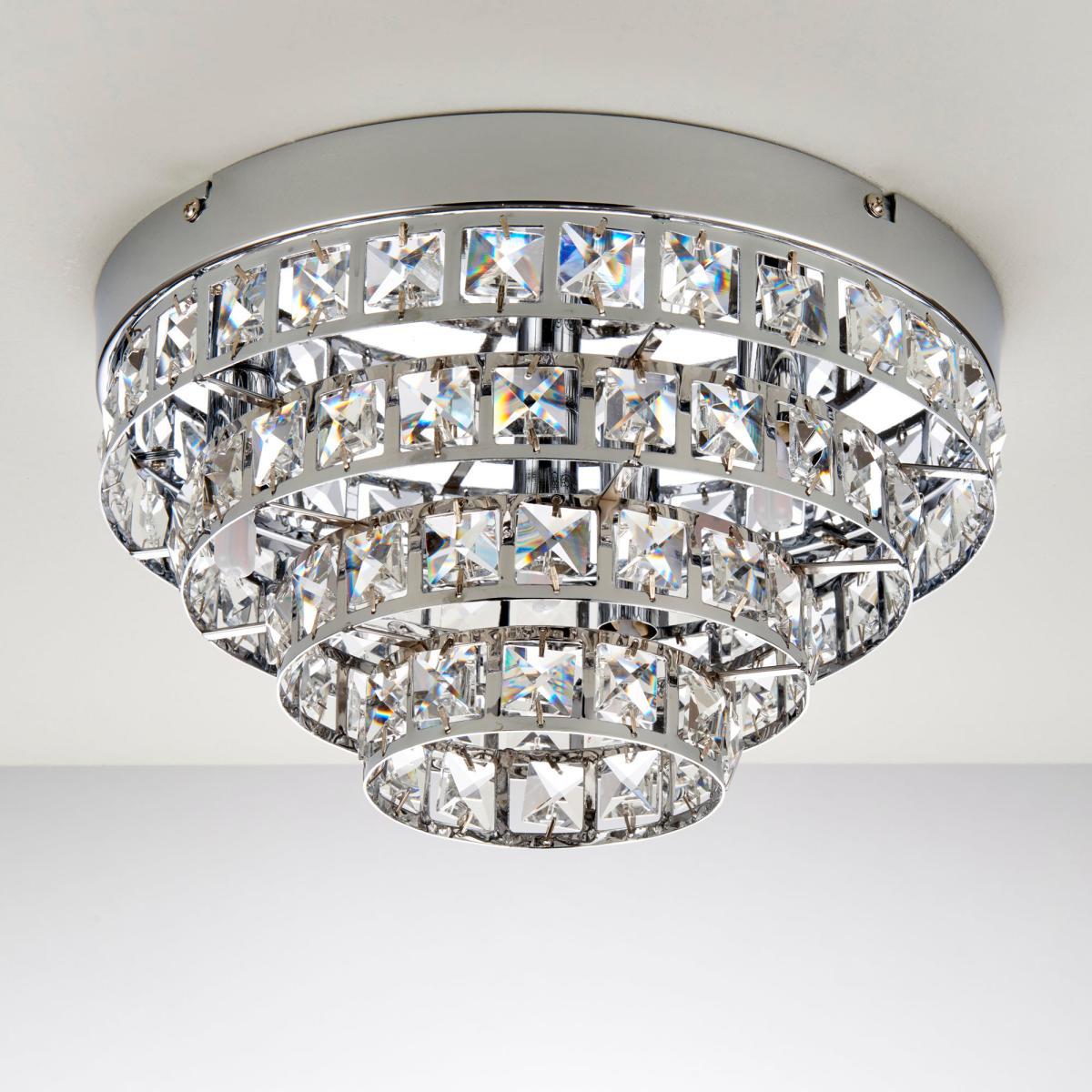 This beautiful chrome plated ceiling light will bring a touch elegance to any interior. Featuring a four light flush fitting and premium clear crystal k5 glass, this light is sure to add a luxurious element to your home decor. A contemporary light that is also dimmable to help create the perfect ambiance for any occasion. The ultimate combination of glamourous style and functionality. Please note: Bulbs are not included. Click. Here. , to view our range of bulbs. This ceiling fitting comes with a 2 year guarantee. Click. Here. To view our terms and conditions.