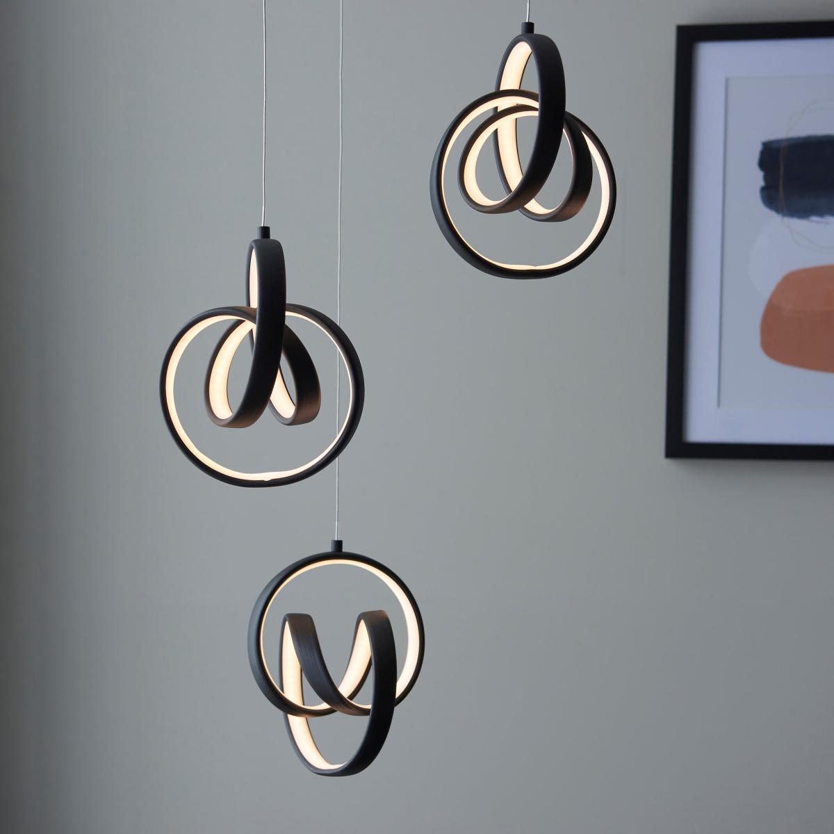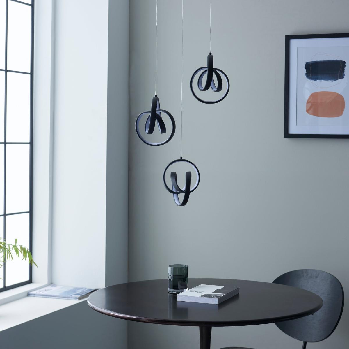 Meet our Elegant Matte Black 3 Light Pendant, a statement piece that effortlessly combines style and functionality. Finished in a chic matte black, this pendant features interlinking LED hoops that hang with grace, creating a contemporary and eye-catching design. The adjustable clear cables allow you to customise the height, providing versatility to suit your space. Compatible with a dimmer switch, this pendant offers flexibility in setting the perfect ambience.