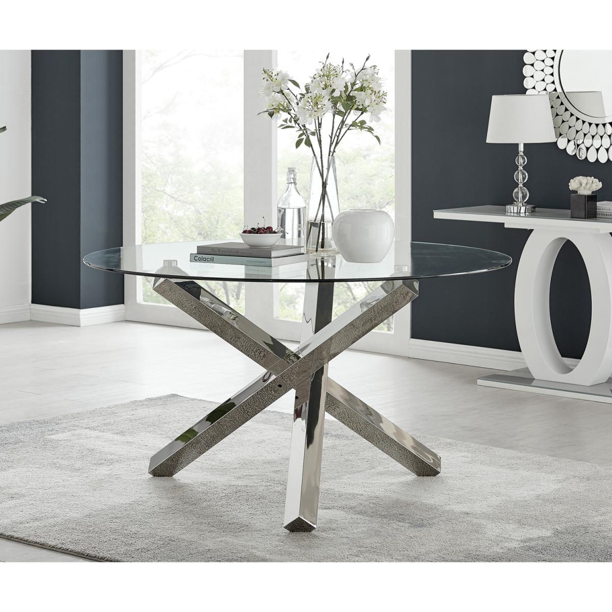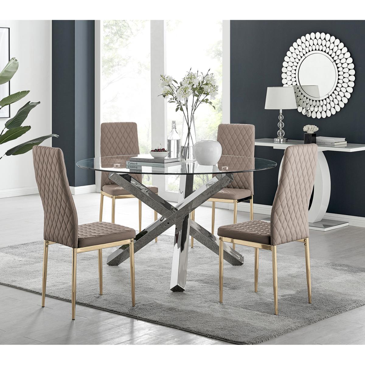 Beautifully crafted and designed, the Vogue table will surely make a modern statement in any dining space. The strong chrome legs provide plenty of support for the table as well as adding a contemporary feel and striking design, whilst the glass top is made from 10mm strong clear tempered glass. The large 136cm x 136cm glass top offers plenty of space for up to 6 guests, ideal for entertaining! With such an appealing design and price tag we just love it and are sure that you will too! Paired alongside our beautiful faux leather diamond quilted Milan dining chairs for a sophisticated contemporary look. The Milan chairs are made from high quality faux leather with trendy gold effect legs and are ergonomically designed for maximum comfort and back support. Made for regular use, the protective plastic feet will protect your floor from any damage. Available in elephant grey, cappuccino grey, white, black or mustard to add your own personality and complete this gorgeous dining set.