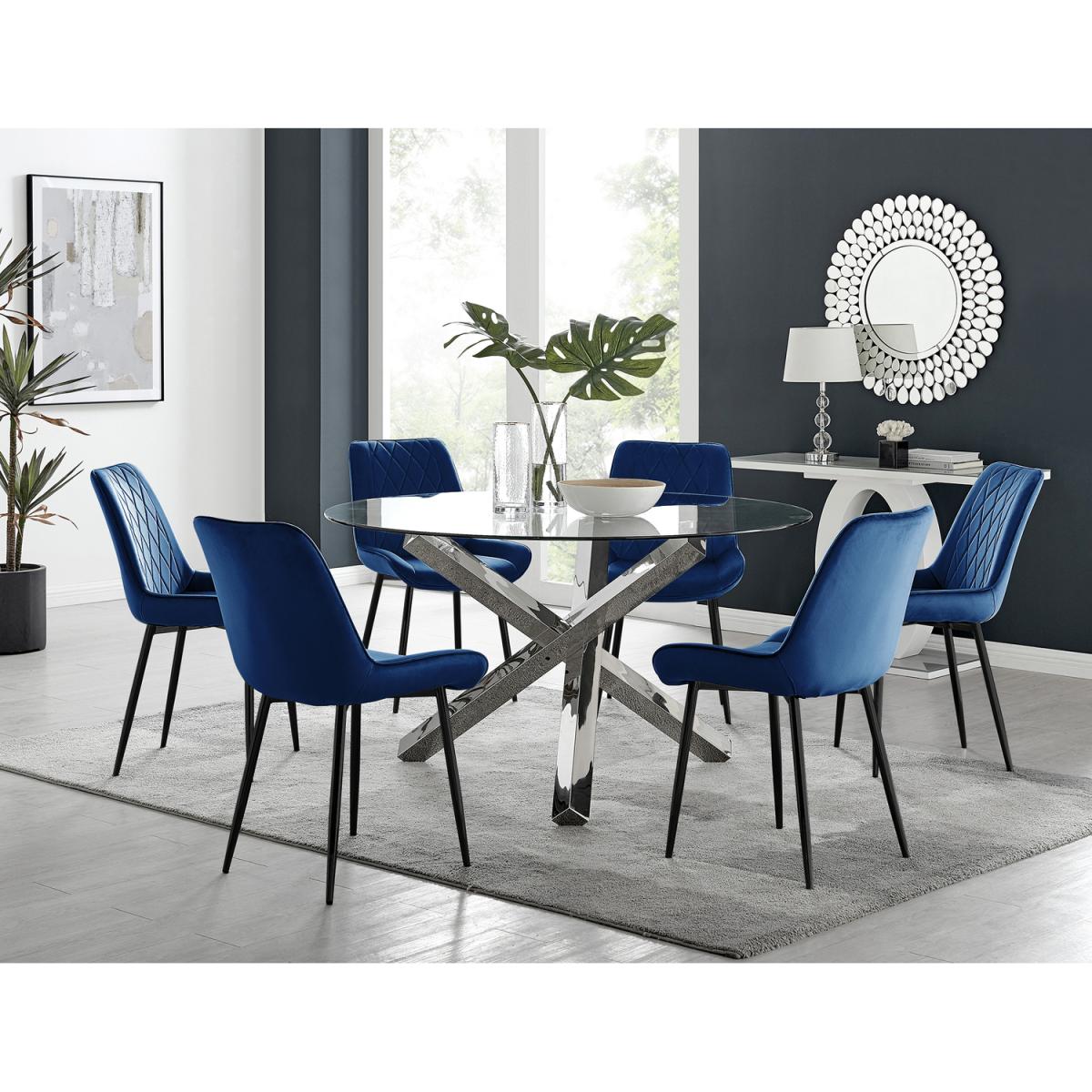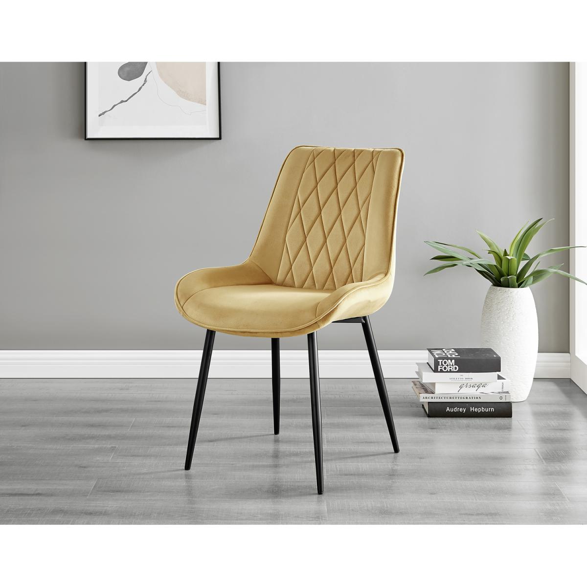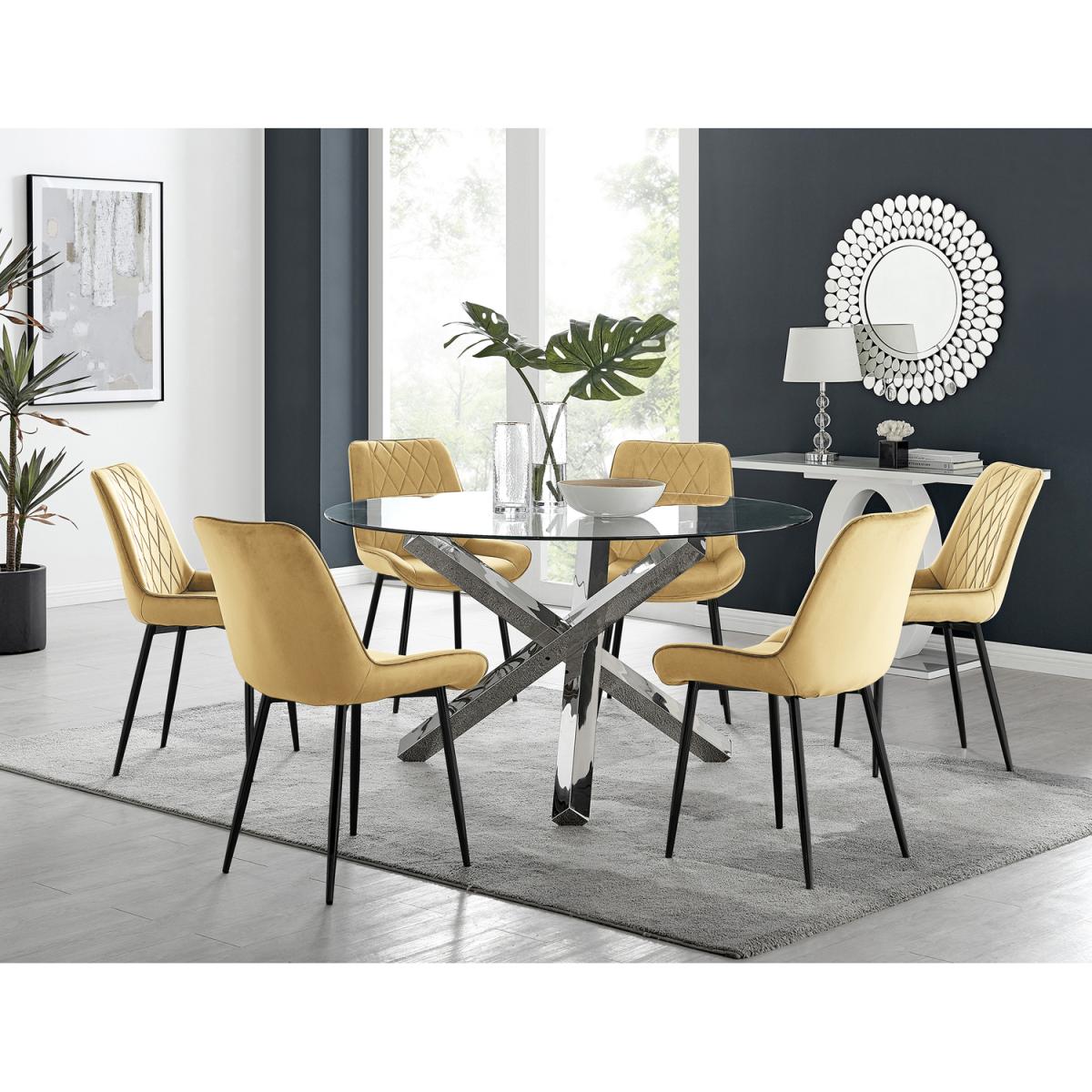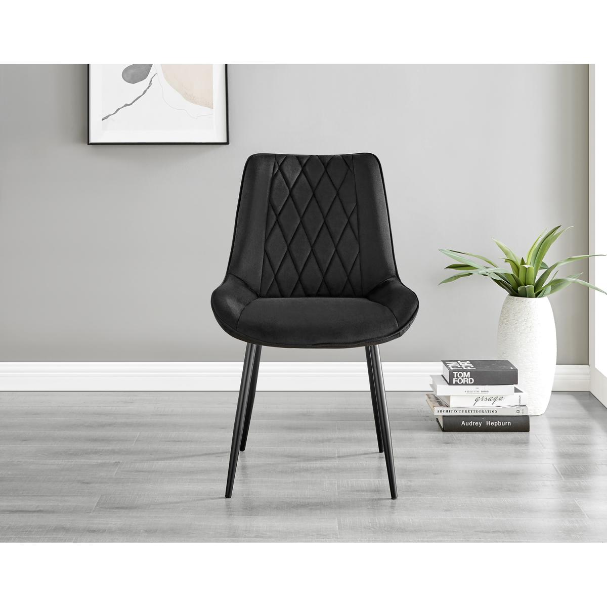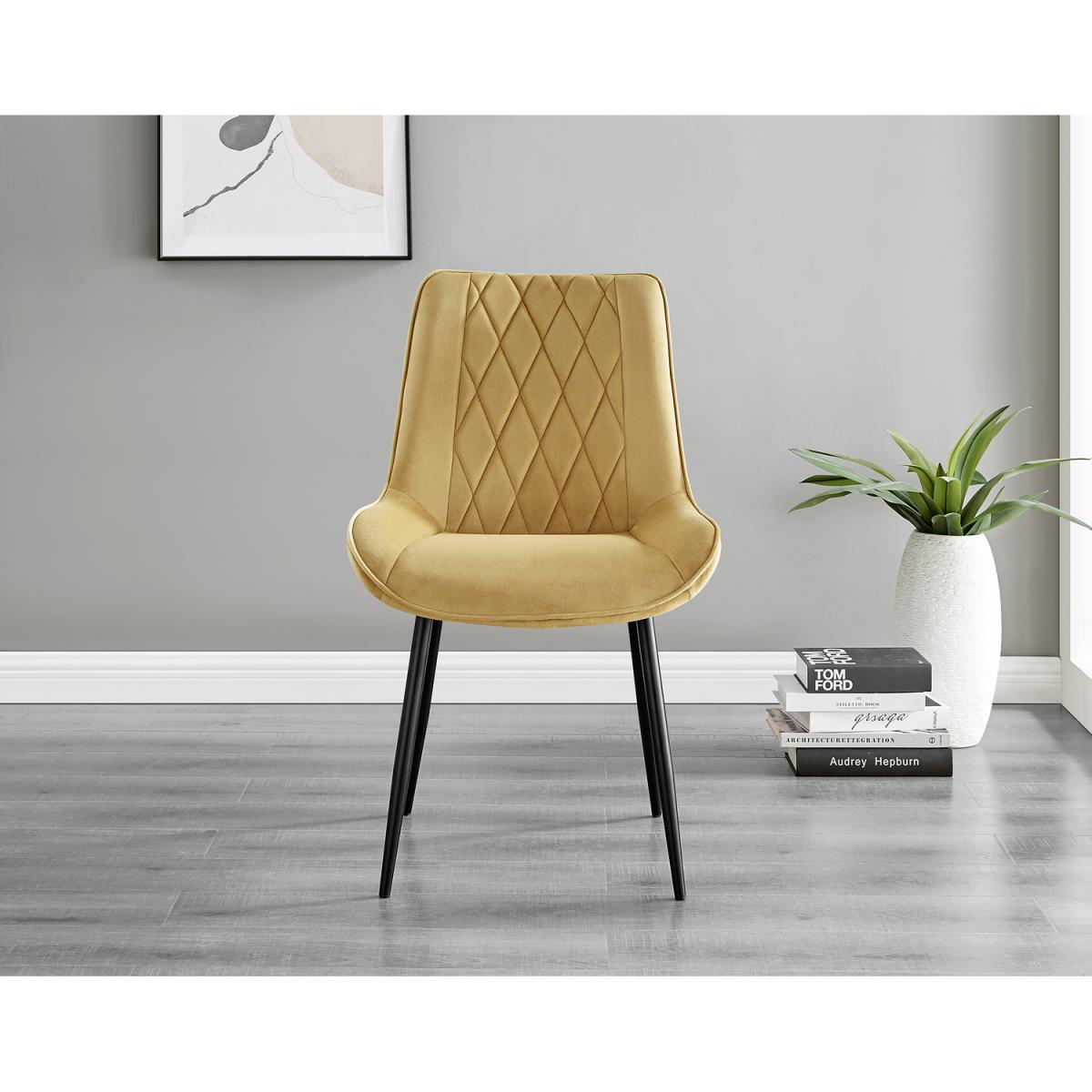 Beautifully crafted and designed, the Vogue table will surely make a modern statement in any dining space. The strong chrome legs provide plenty of support for the table as well as adding a contemporary feel and striking design, whilst the glass top is made from 10mm strong clear tempered glass. The large 136cm x 136cm glass top offers plenty of space for up to 6 guests, ideal for entertaining! With such an appealing design and price tag we just love it and are sure that you will too! Please note chairs are not included and this is price is for the dining table only. Modernise your dining area with our luxurious velvet upholstered Pesaro Dining Chairs. With a nod to the Mid-century modern design era, the Pesaro features gorgeous textured diamond stitching with an ergonomically designed curved seat pad blending seamlessly to the supporting medium high back rest. Sat atop elegant slightly tapered legs in black, chrome or gold effect. The Pesaro is a perfect match to any dining table or use as a luxe vanity seat in the bedroom, as an occasional chair for the living area or to add a bit of luxury to your home office.