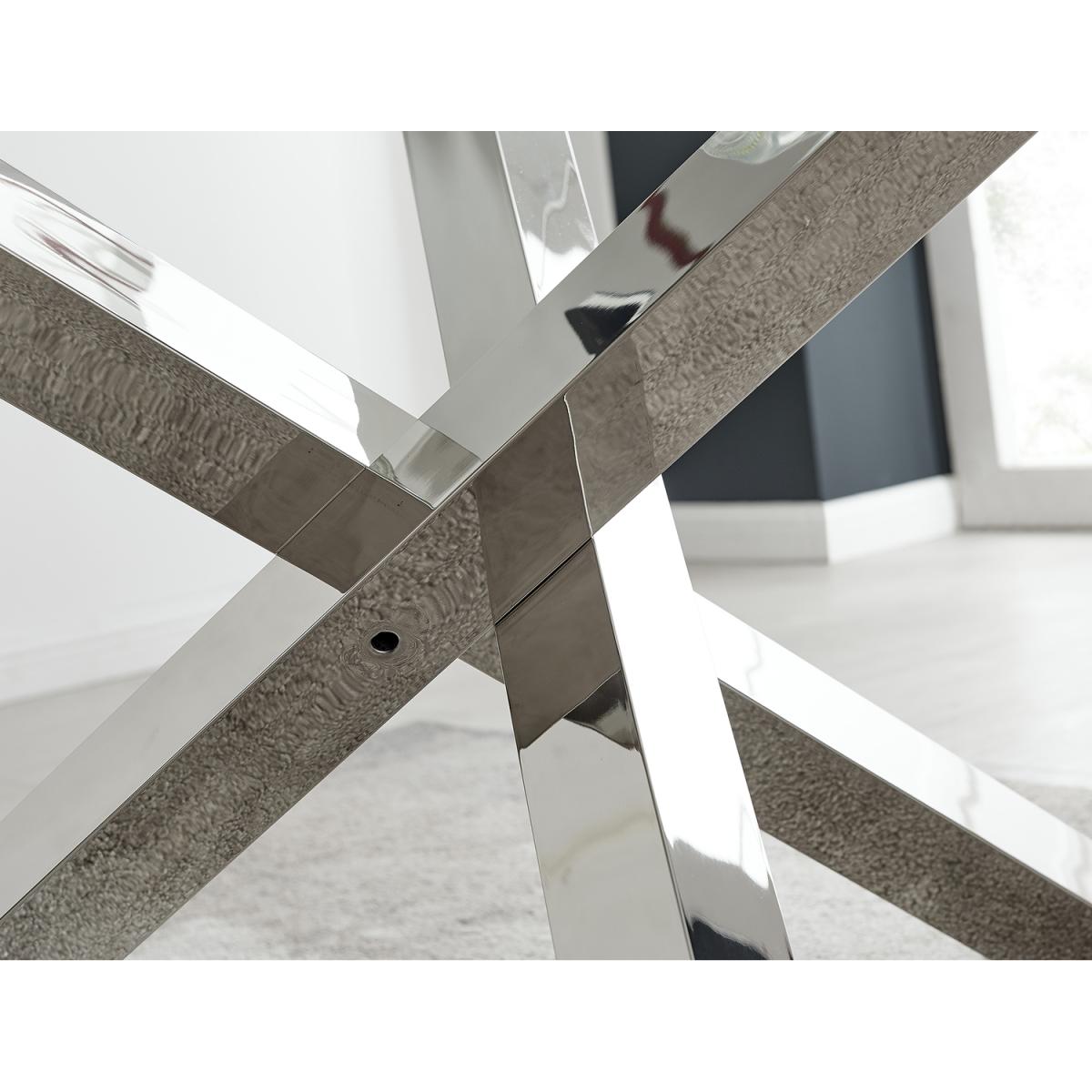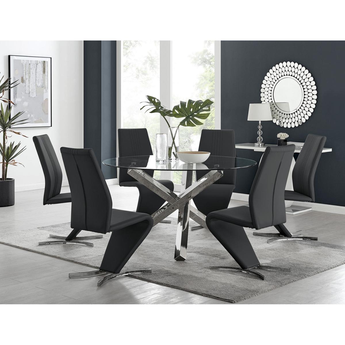 Beautifully crafted and designed, the Vogue table will surely make a modern statement in any dining space. The strong chrome legs provide plenty of support for the table as well as adding a contemporary feel and striking design, whilst the glass top is made from 10mm strong clear tempered glass. The large 136cm x 136cm glass top offers plenty of space for up to 6 guests, ideal for entertaining! With such an appealing design and price tag we just love it and are sure that you will too! Partnered alongside our premium modern Willow dining chairs, this dining set will really offer the wow factor! These eye-catching, faux leather chairs are fully padded throughout and have an ergonomically designed back support to maximise comfort. They also feature half-moon chromed feet, which give these chairs a sturdy base. The curved design gives the Willow chair a contemporary elegance and they compliment the table perfectly. Add your own personality by choosing from a range of colours for the chairs