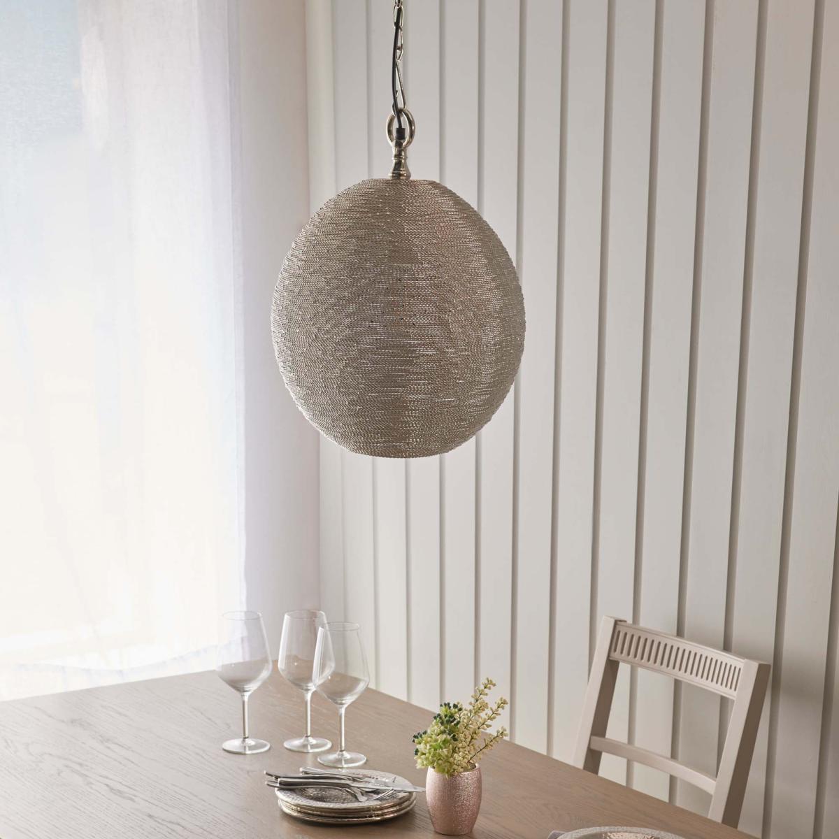 Add a unique touch to your home with this beautiful handmade decorative wire pendant. The Vogue Saluzzo is crafted with a unique construction, which creates the most perfect diffused light effect in your home. Beautifully finished in a polished nickel and suspended from a height adjustable chain set, this light would make a timeless authentic addition to the most loved interiors of your home.