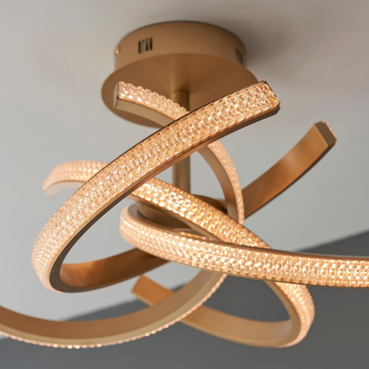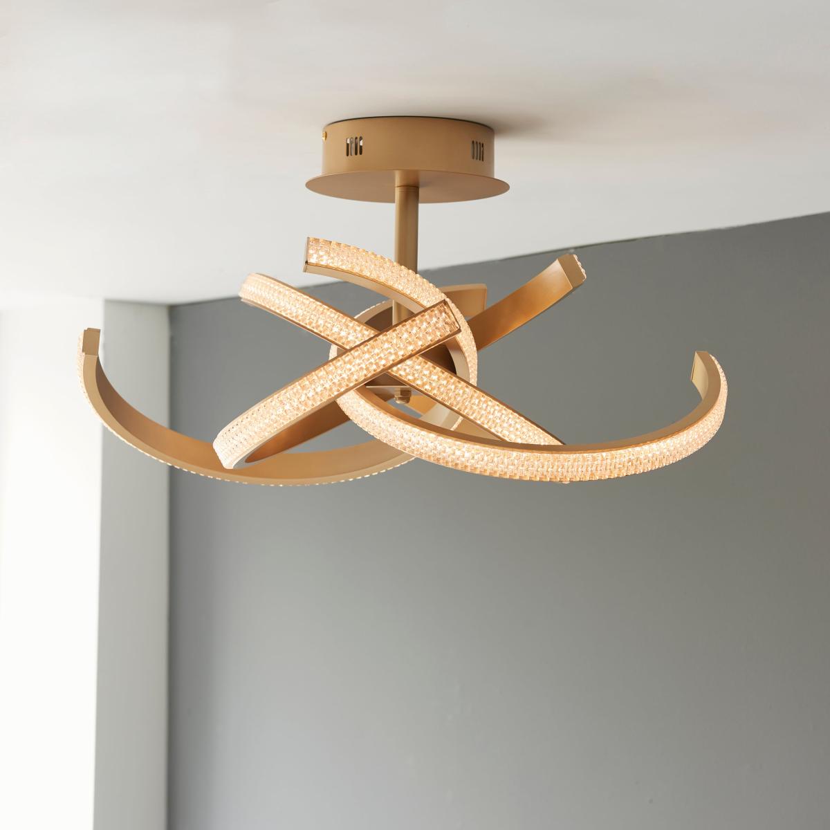 I love this semi-flush in the Vogue Sierra series for its modern yet subtle sophistication. Its gold finish adds a touch of luxury without being ostentatious, making it versatile for both contemporary and transitional interiors. It works particularly well in spaces with high ceilings, dining areas, or bedrooms where you want to create a statement without overwhelming the room. Practical styling tips include pairing it with neutral colour palettes to let the gold pop, or contrasting it with textured fabrics and matte finishes for layered visual interest. Keep it uncluttered around the fixture to allow its unique, twisting design to become a focal point.