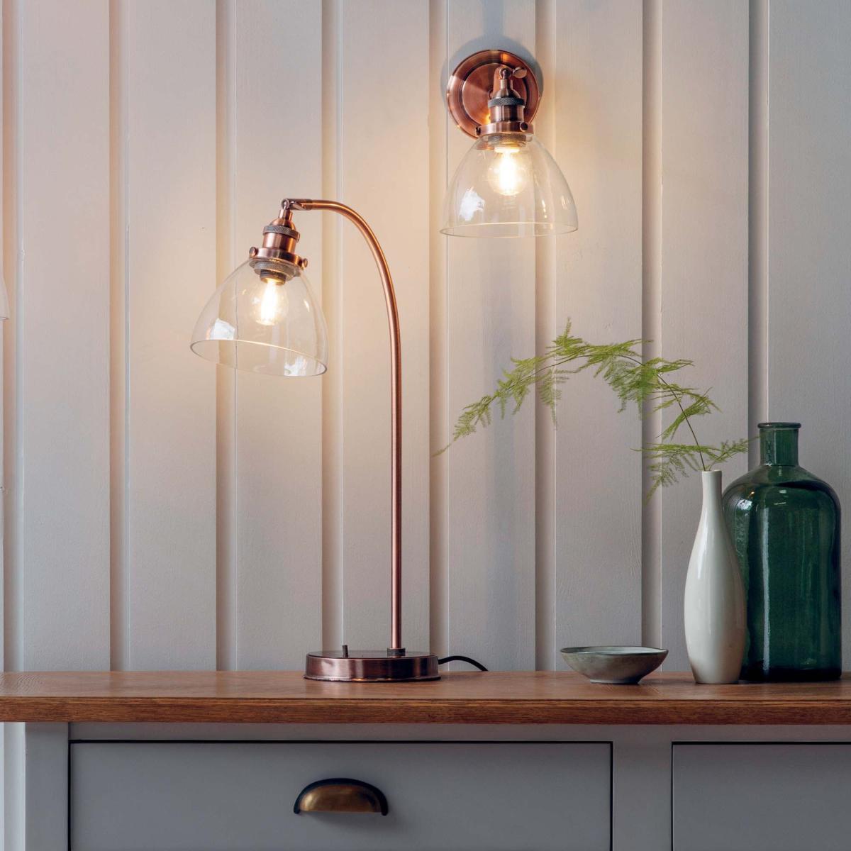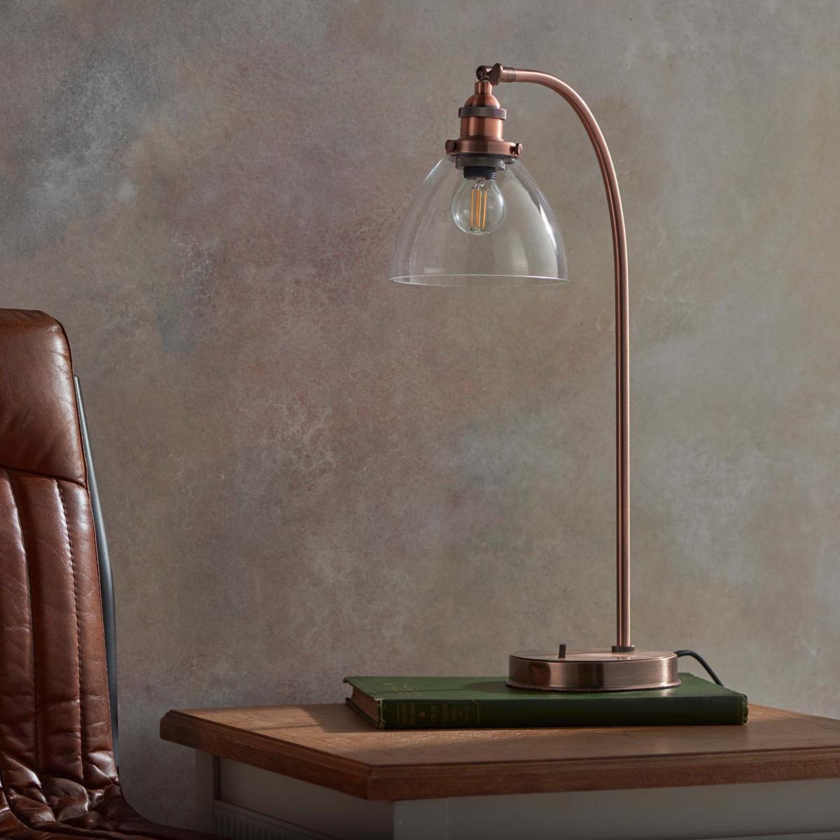 The Vogue Tobermory Table Light is perfect for injecting a modern retro touch to your home décor. This piece is finished in an aged copper plating with authentic knurled lamp holder detailing and a clear glass shade. Complete with an accessible on/off knuckle switch, making this a practical table lamp for your room and a perfect addition for today's stylish homes to create that on trend bar, bistro look. Pair this table light with filament LED lamps for that perfect industrial style.