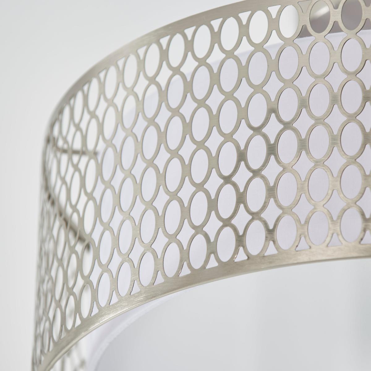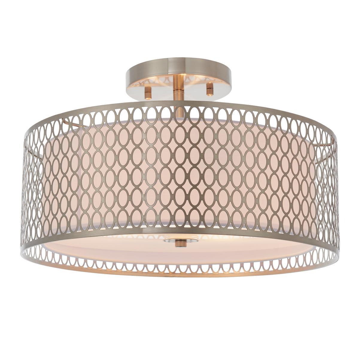 The stunning Vogue Tolna 3 Light flush ceiling light features a classic circular design with a trendy geometric fretwork, finished with an inner fabric shade for lovely light diffusion. This modern design is dimmable and perfect for low ceilings.