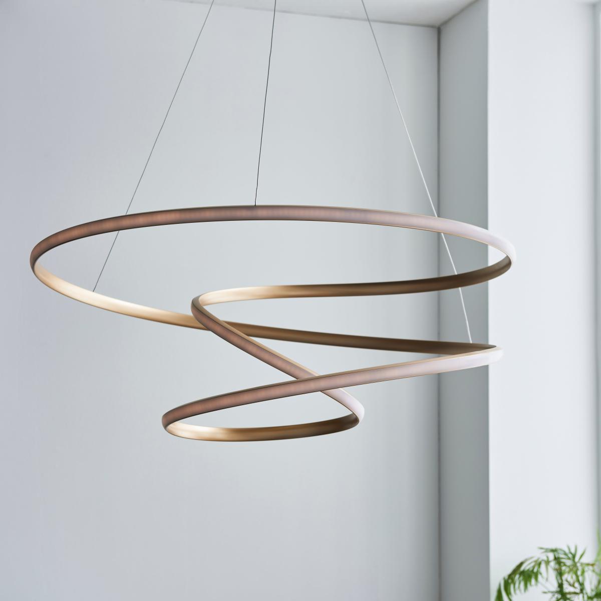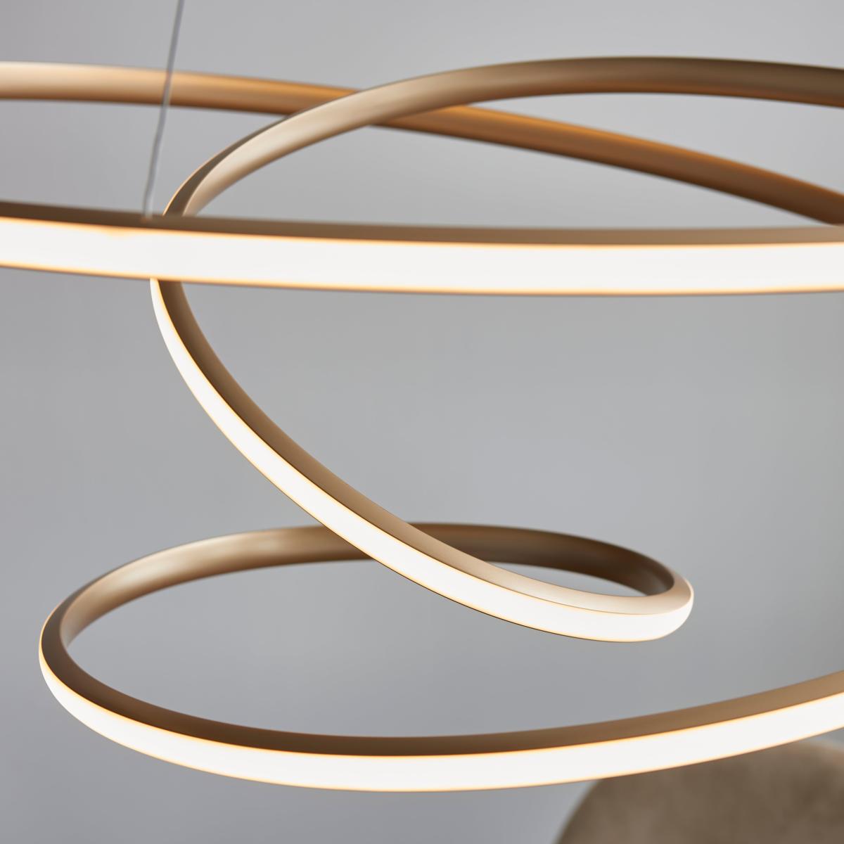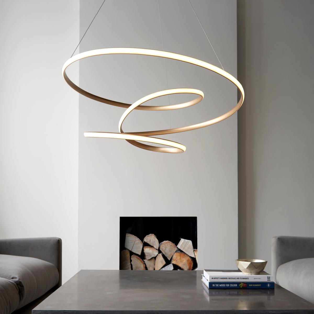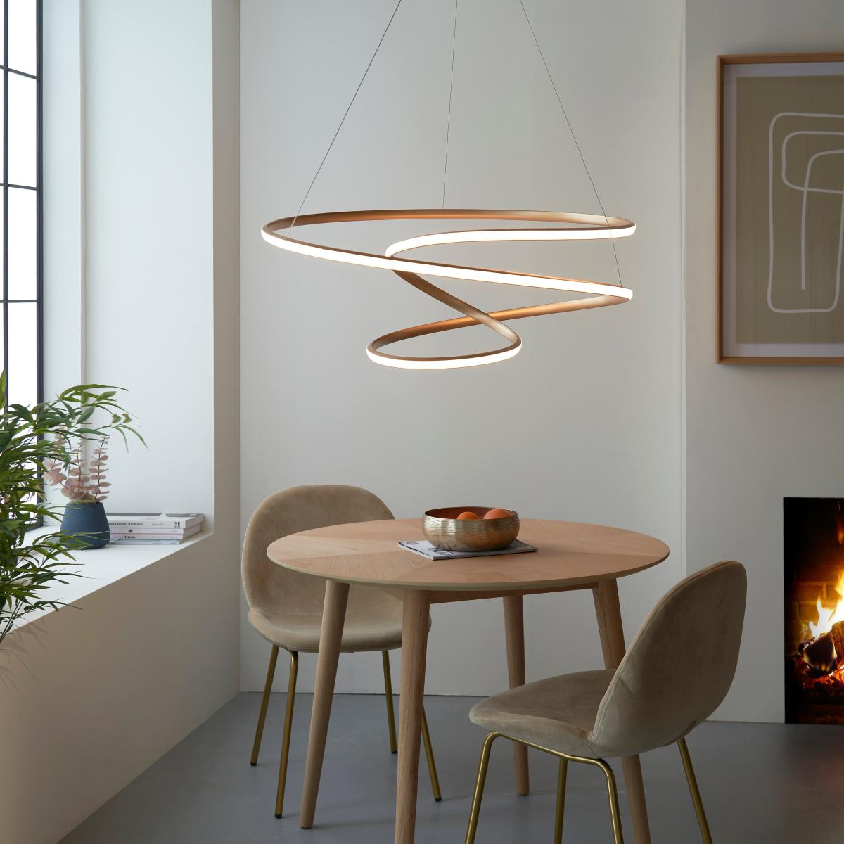 I love this ceiling light because of its contemporary, sculptural design that adds visual interest without overwhelming the space. Its spiral form works particularly well in modern or minimalist interiors, offering a focal point that blends function and form seamlessly. For practical styling, it’s best suited to rooms with high ceilings or open-plan spaces where it can hang freely and make a statement. Pair it with neutral colour schemes and sleek furnishings to highlight its gold finish and sweeping silhouette, or use it to introduce a touch of glamour to a more subdued interior. It’s a versatile piece that elevates the look of living rooms, dining areas, or even bedrooms with its refined yet striking aesthetic.