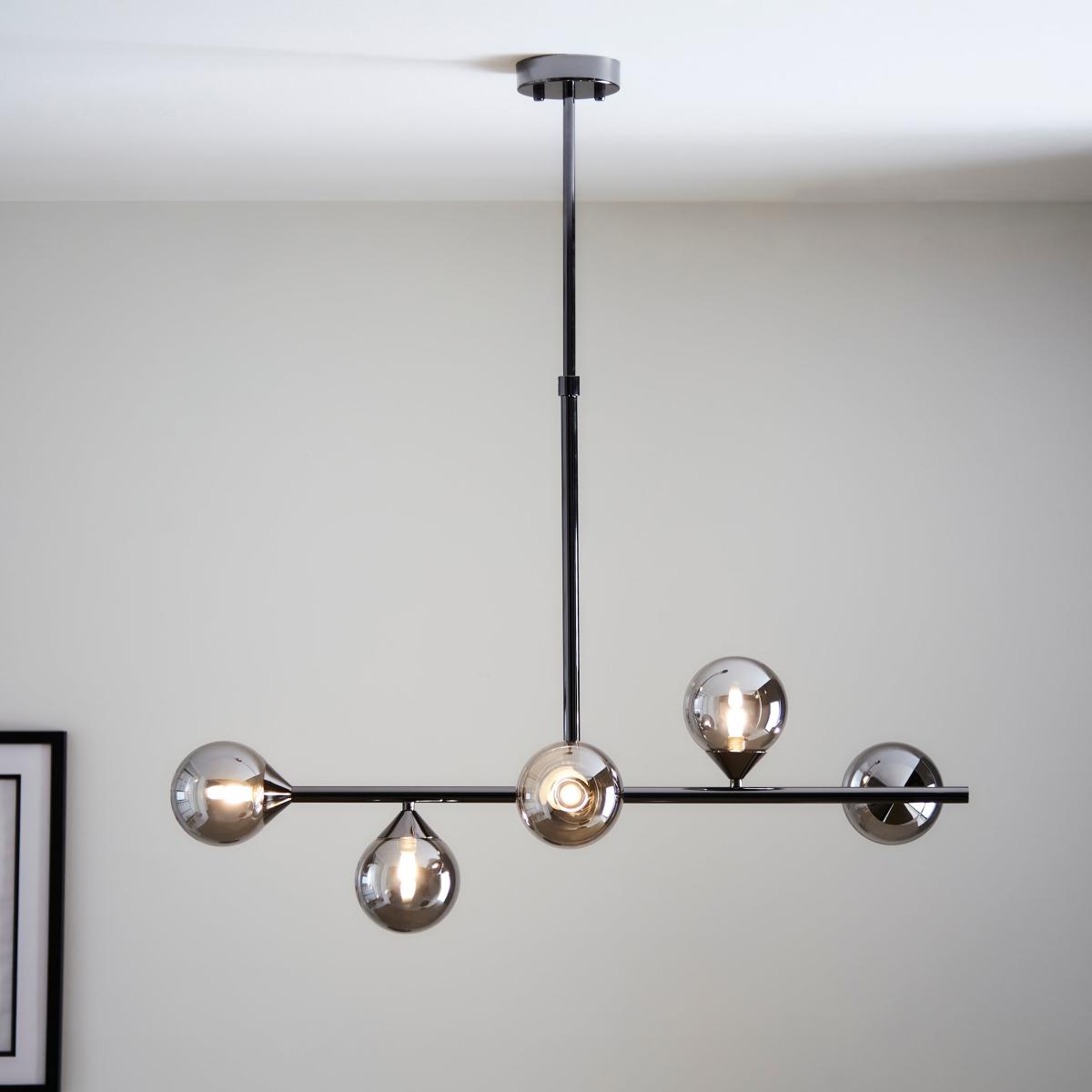 Illuminate your dining area or open-plan living space with our Willis 5 Light Diner Ceiling Fitting, a perfect blend of on-trend design and practical functionality. Crafted in a sleek satin finish, this linear fitting boasts glossy glass shades that add a touch of modern Scandi style to your interior. The height-adjustable stem offers versatility in positioning, allowing you to customise the lighting to suit your space. Compatible with a dimmer switch, this ceiling fitting provides flexibility in setting the perfect ambience for any occasion. Available in two colorways, this fitting caters to various interior styles.