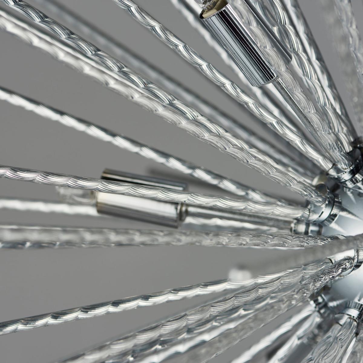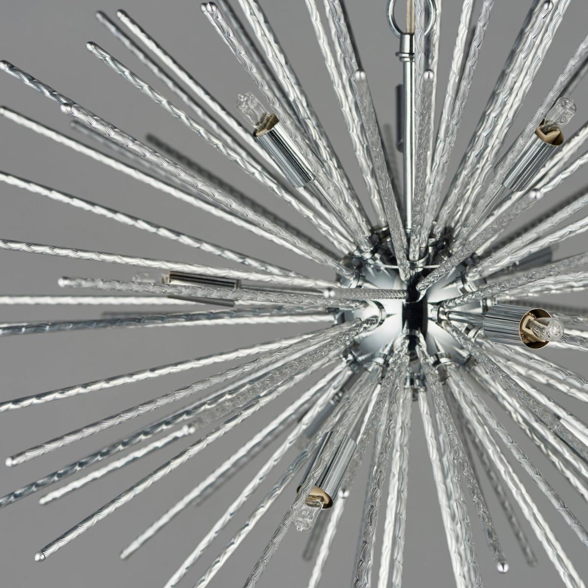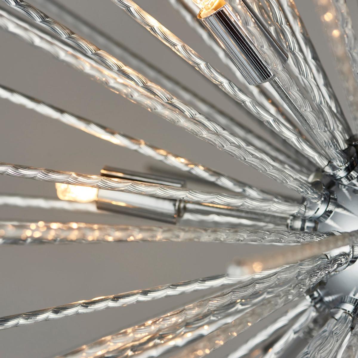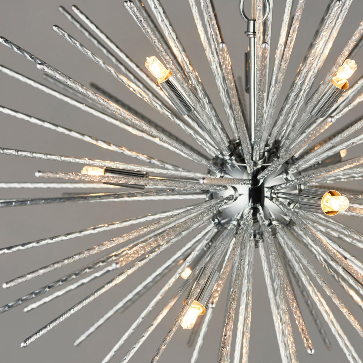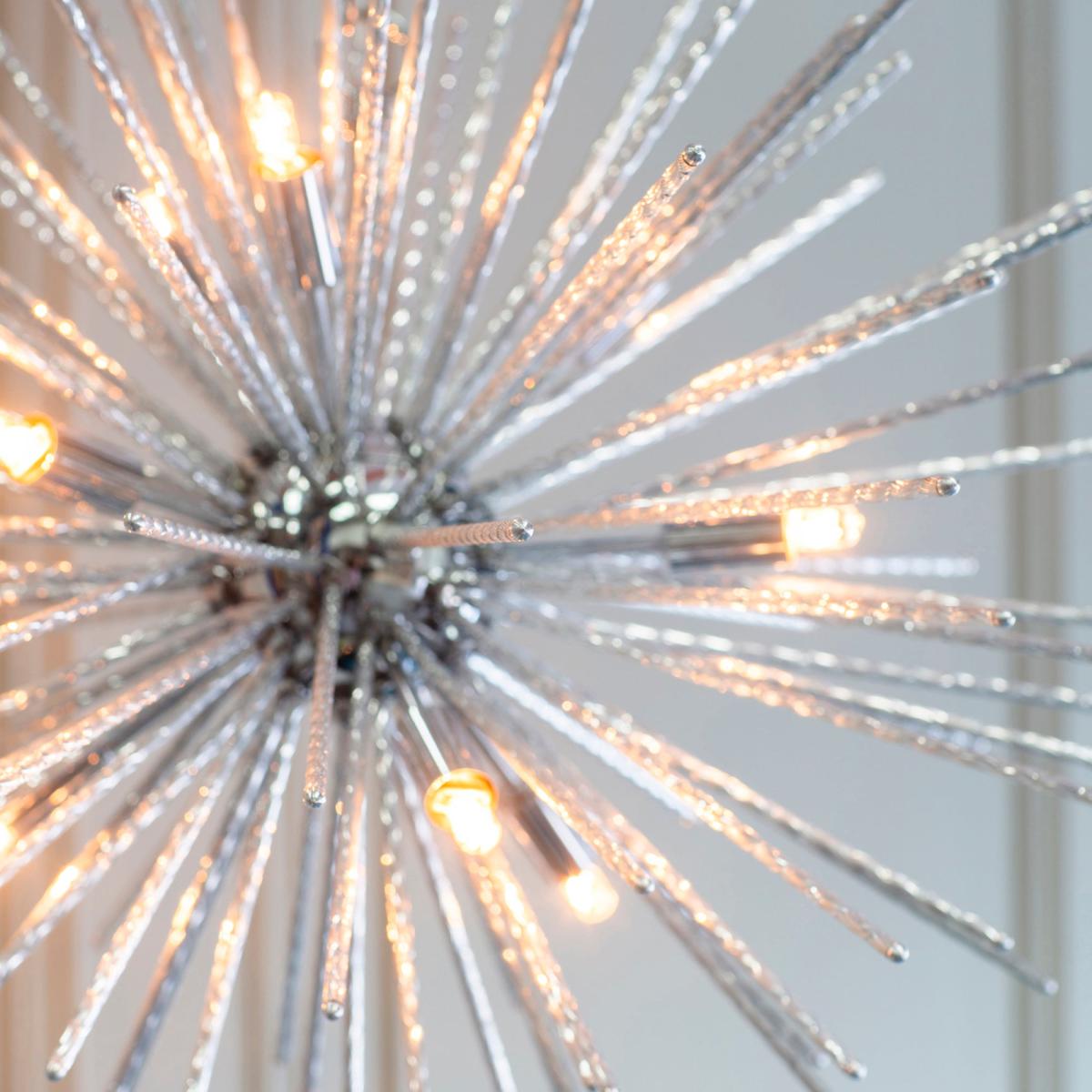 A modern version of a timeless classic from the past, the Winton Sputnik Chandelier is finished in polished chrome, featuring an 'explosion' of textured rods that create dramatic light patterns. Suspended from a height adjustable chain with clear flex, be brave and add this to modern or classic interiors.