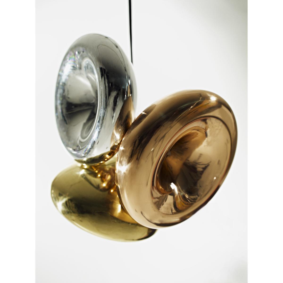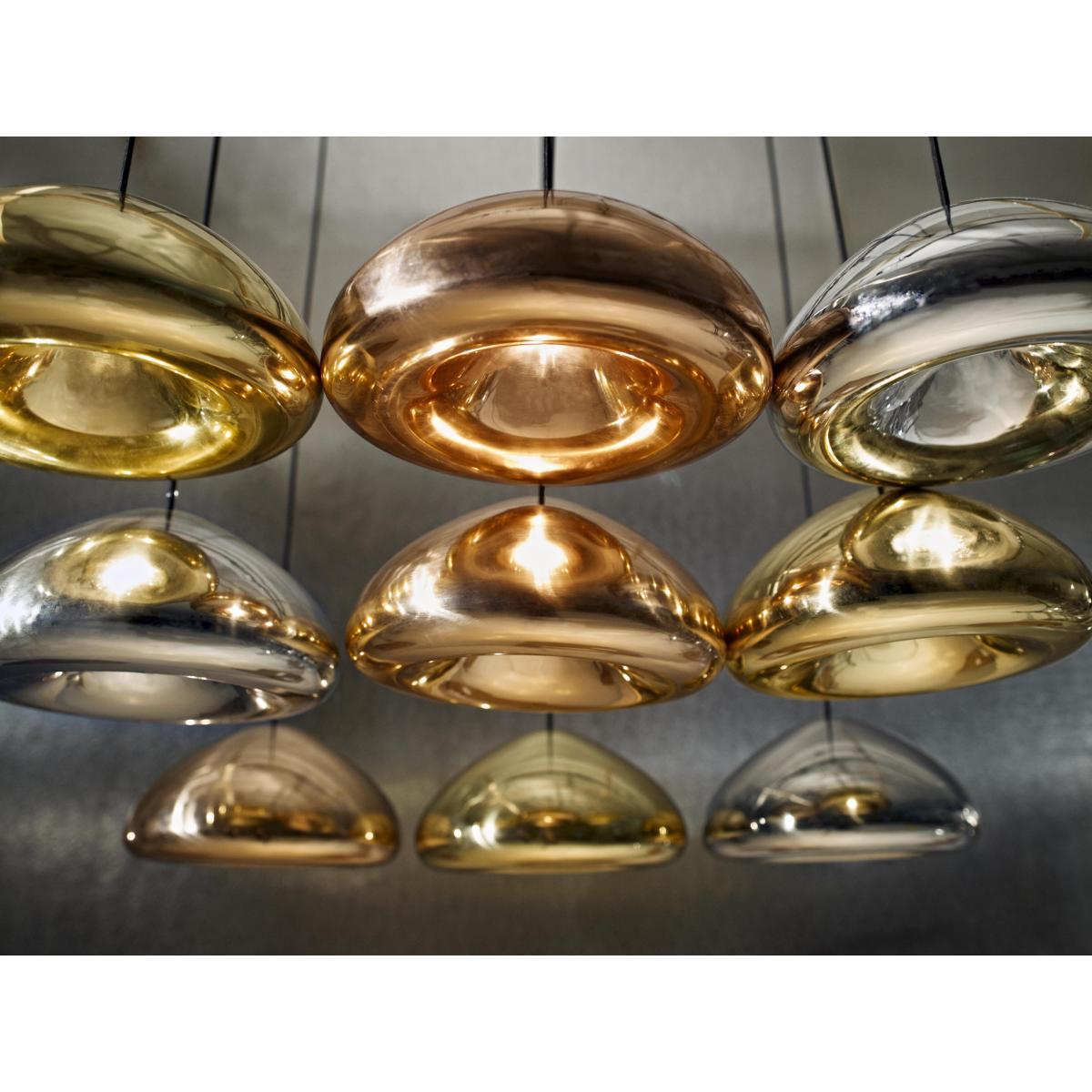 Inspired by the metallic colours of the Olympic medals, Void is a mysterious, magical pendant that plunges us into the attraction of reflective materials. It’s offered as an expressionist sculpture, a chameleon object surrounded by mysteries that reflects its environment thanks to its mirror finish. The complex top-shaped lampshade is made from solid sheets of metal, worked into a double wall finish. The metal is turned and polished by hand to create a mirror effect and then covered with a thin layer of lacquer to maintain the high-gloss finish. The reflective qualities of this surface allow excellent light diffusion. Void also provides a concentrated, direct light thanks to the LED light source built into the hollow of the top. More energy-efficient, the Void pendant is now equipped with an integrated LED light source. This LED module offers longer life expectancy, better energy efficiency and improved performance, including the ability to dim and control the light. This integrated LED module is fully serviceable and replacement components are available if needed.
