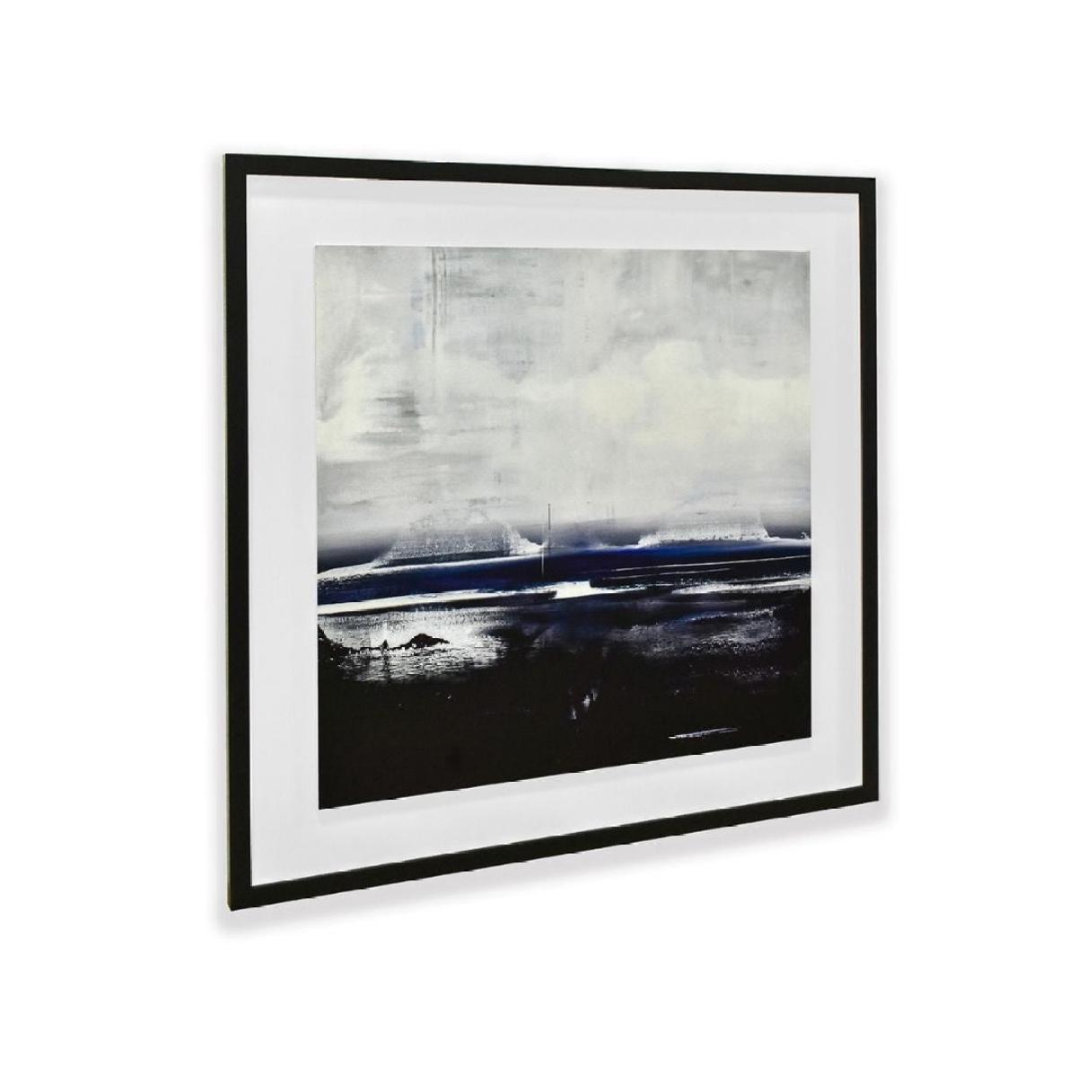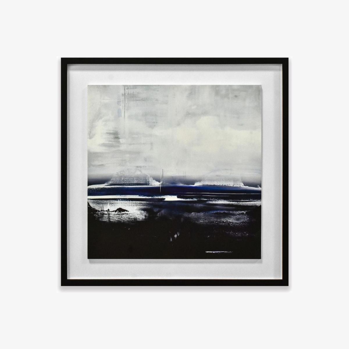 By Soozy Barker, a square wooden plaque mounted on a white board and framed in black. Volcanic Coast by Soozy Barker is a striking piece of wall art, ,framed in black for a clean, modern finish. The artwork captures an abstract interpretation of a dramatic seascape, with swirling tones of grey, black and deep blue. The composition evokes the raw power of the ocean, with visible wave movement under a heavy, overcast sky. Bold and atmospheric, this piece brings a moody coastal energy to any interior space.