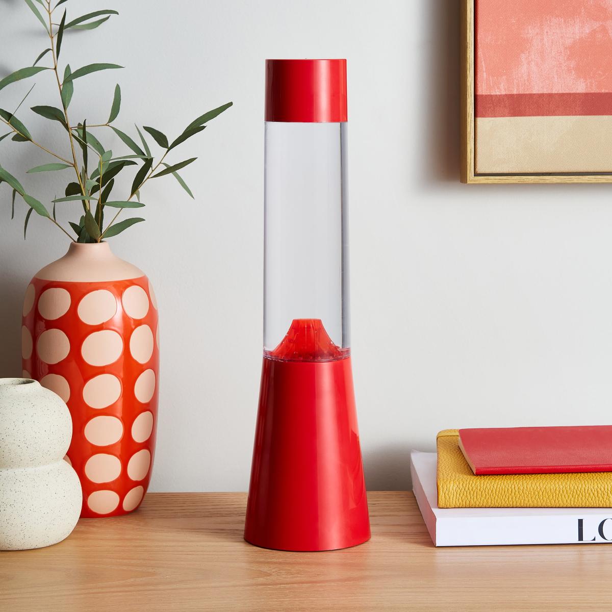 I love this lava lamp for adding a fun, retro touch to various interiors. Its vibrant red colour makes it a statement piece that works well in both playful and modern spaces, such as a living room side table or a teen's bedroom. It’s particularly effective when styled alongside bold colours or kept in a minimalist setting to create a pop of colour and a bit of visual interest. Practical styling tips include placing it on a shelf or console with neutral tones nearby so it doesn’t feel overwhelmed, or pairing it with other vintage accessories for a cohesive look. It’s also a great option for creating cosy, ambient lighting without needing a main light source, especially in relaxing spaces.