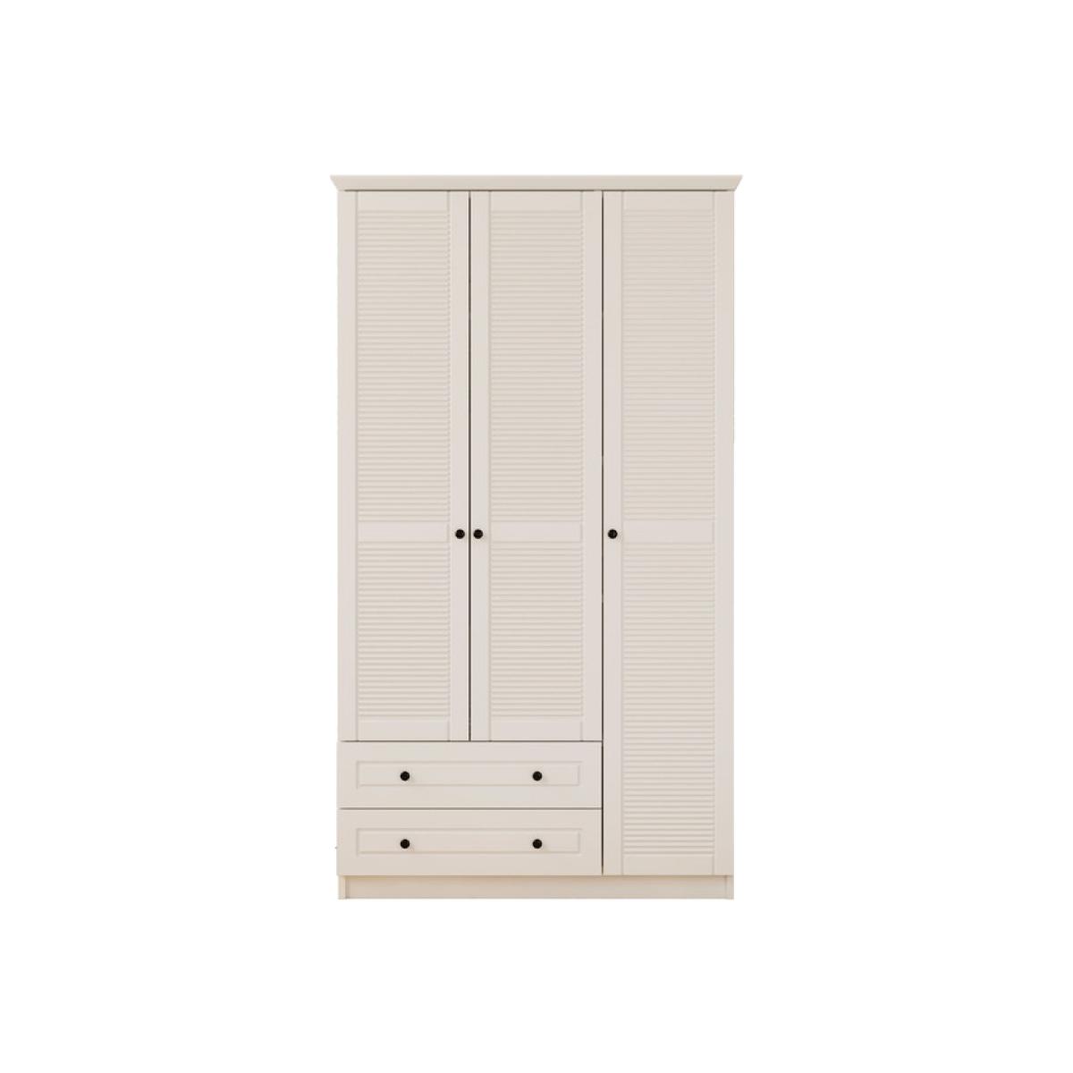 VOLET is a unique blend of French furniture with contemporary, boasting a vintage look. Featuring tapered style cornicing and gunmetal black handles this wardrobe will add an elegant touch to your bedroom. Complete with three doors and two deep drawers this wardrobe is fashioned with a hanging rail and ample storage. Colour White Material Membrane coated MDF board, finished with CNC process. Dimensions Width105cm,Height184cm,Depth52cm. Delivered flat packed in 4x Boxes. Total Gross Weight95.9kg.!!!IMPORTANT INFORMATION!! Due to the size and the weight of this item, it is shipped out flat packed with 2MA N White Glove Guaranteeed Next Day Delivery Service to your room of choice with PANTHER logistics. After placing your order you can book your delivery by following the email instructions from PANTHER Logistics. !! Once the item is dispatched from our warehouse , cancelation or change of delivery date is subject to 50 charge!! Please note that items can not be left in a safe place or with a neighbour. If you are not happy with this service please let us know before item is dispatched and we will send your item with a standard 2man 7-10 days delivery service instead of next day service.