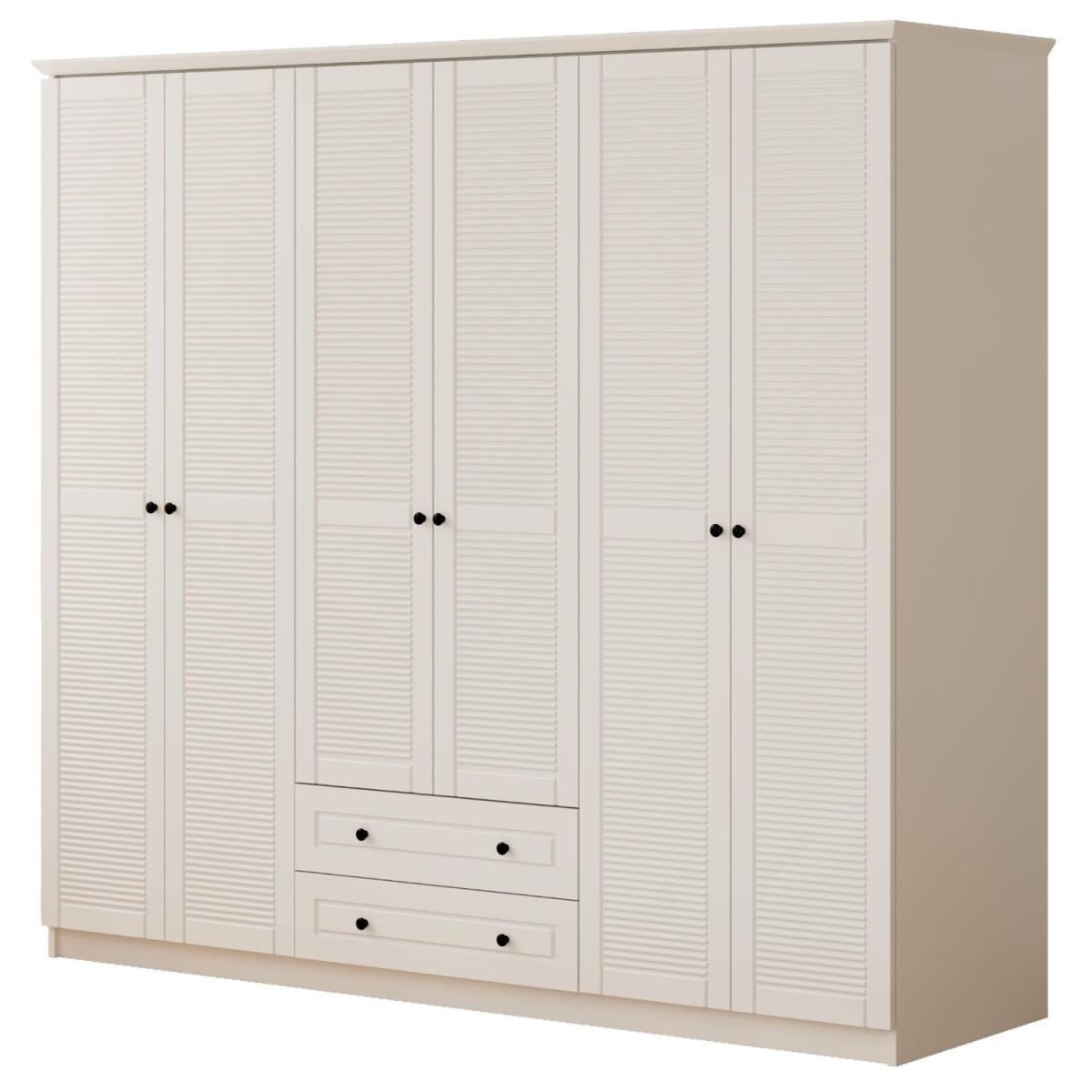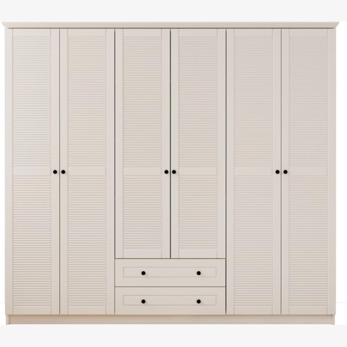 VOLET is a unique blend of French furniture with contemporary, boasting a vintage look. Featuring tapered style cornicing and gunmetal black handles this wardrobe will add an elegant touch to your bedroom. Complete with six doors and two deep drawers this wardrobe is fashioned with a hanging rail and ample storage. Colour White Material Membrane coated MDF board, finished with CNC process. Dimensions Width210cm,Height184cm,Depth52cm. Delivered flat packed in 6x Boxes. Total Gross Weight156.2kg.!!!IMPORTANT INFORMATION!! Due to the size and the weight of this item, it is shipped out flat packed with 2MA N White Glove Guaranteeed Next Day Delivery Service to your room of choice with PANTHER logistics. After placing your order you can book your delivery by following the email instructions from PANTHER Logistics. !! Once the item is dispatched from our warehouse , cancelation or change of delivery date is subject to 50 charge!! Please note that items can not be left in a safe place or with a neighbour. If you are not happy with this service please let us know before item is dispatched and we will send your item with a standard 2man 7-10 days delivery service instead of next day service.