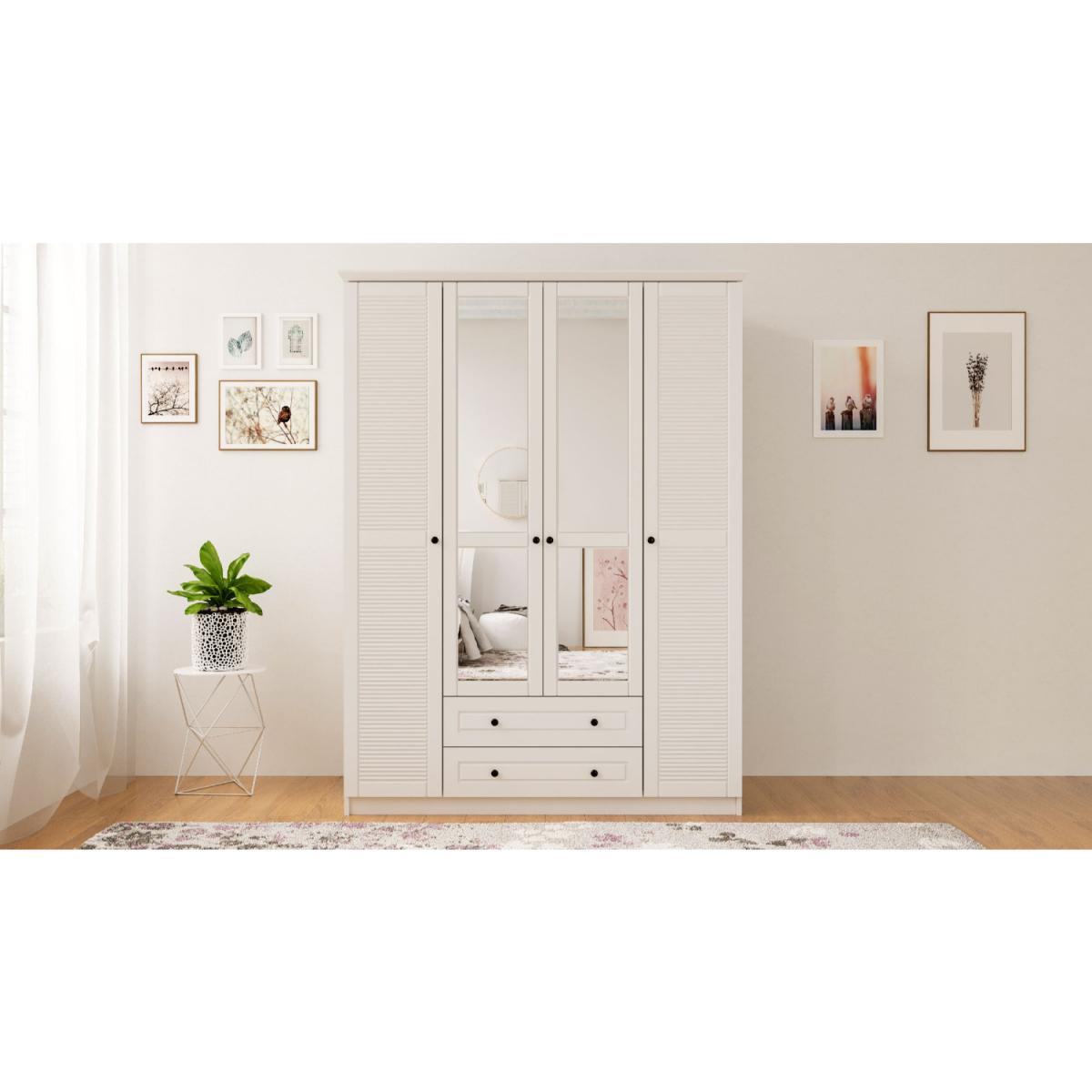 Featuring tapered style cornicing and gunmetal black handles this wardrobe will add an elegant touch to your bedroom. Complete with four doors and two deep drawers this wardrobe is fashioned with a hanging rail and ample storage. The glass mirrors on the doors creates a dressing room atmosphere while reflecting light and space around your room. Colour White Material Membrane coated MDF board, finished with CNC process. Glass Mirror. Dimensions Width140cm,Height210cm,Depth52cm. Delivered flat packed in 6x Boxes. Total Gross Weight144.9kg.!!!IMPORTANT INFORMATION!! Due to the size and the weight of this item, it is shipped out flat packed with 2MA N White Glove Guaranteeed Next Day Delivery Service to your room of choice with PANTHER logistics. After placing your order you can book your delivery by following the email instructions from PANTHER Logistics. !! Once the item is dispatched from our warehouse , cancelation or change of delivery date is subject to 50 charge!! Please note that items can not be left in a safe place or with a neighbour. If you are not happy with this service please let us know before item is dispatched and we will send your item with a standard 2man 7-10 days delivery service instead of next day service.