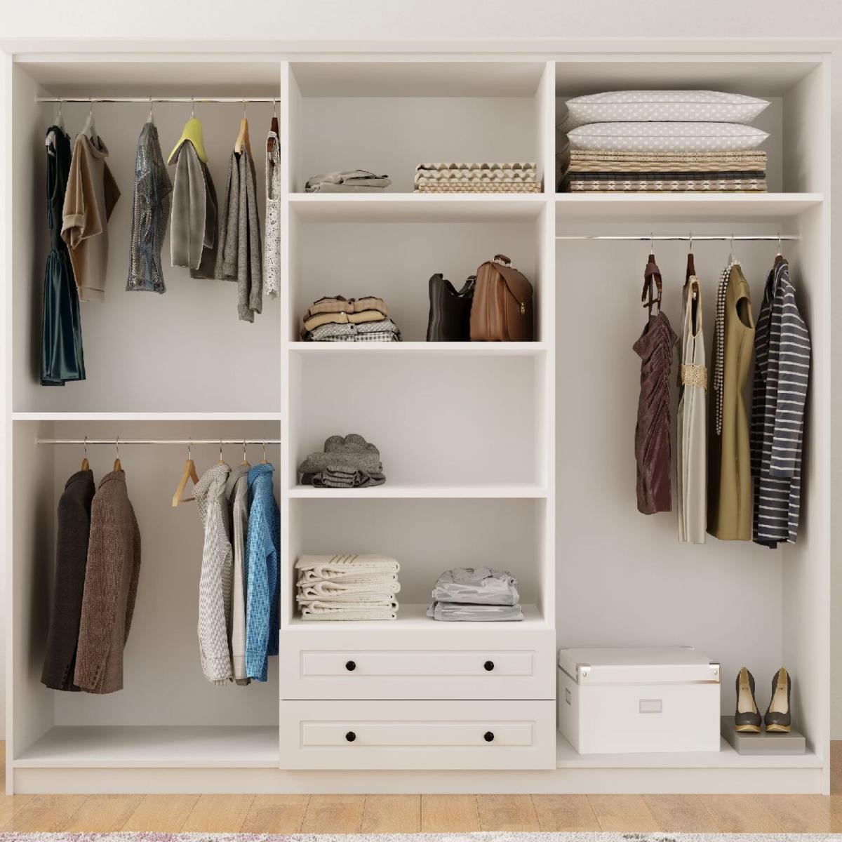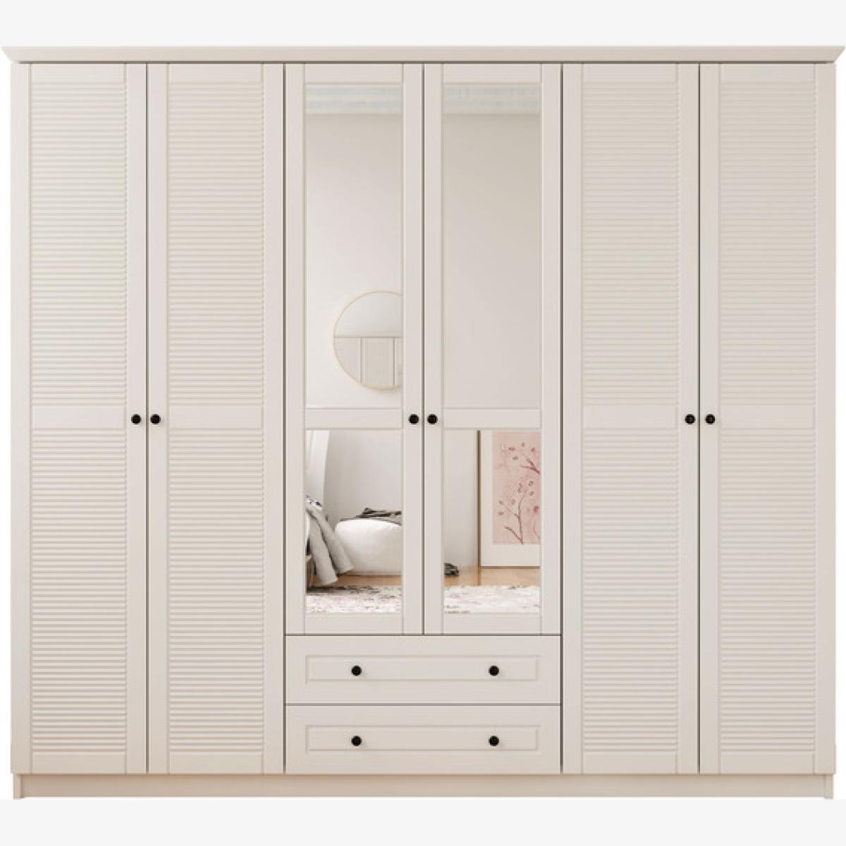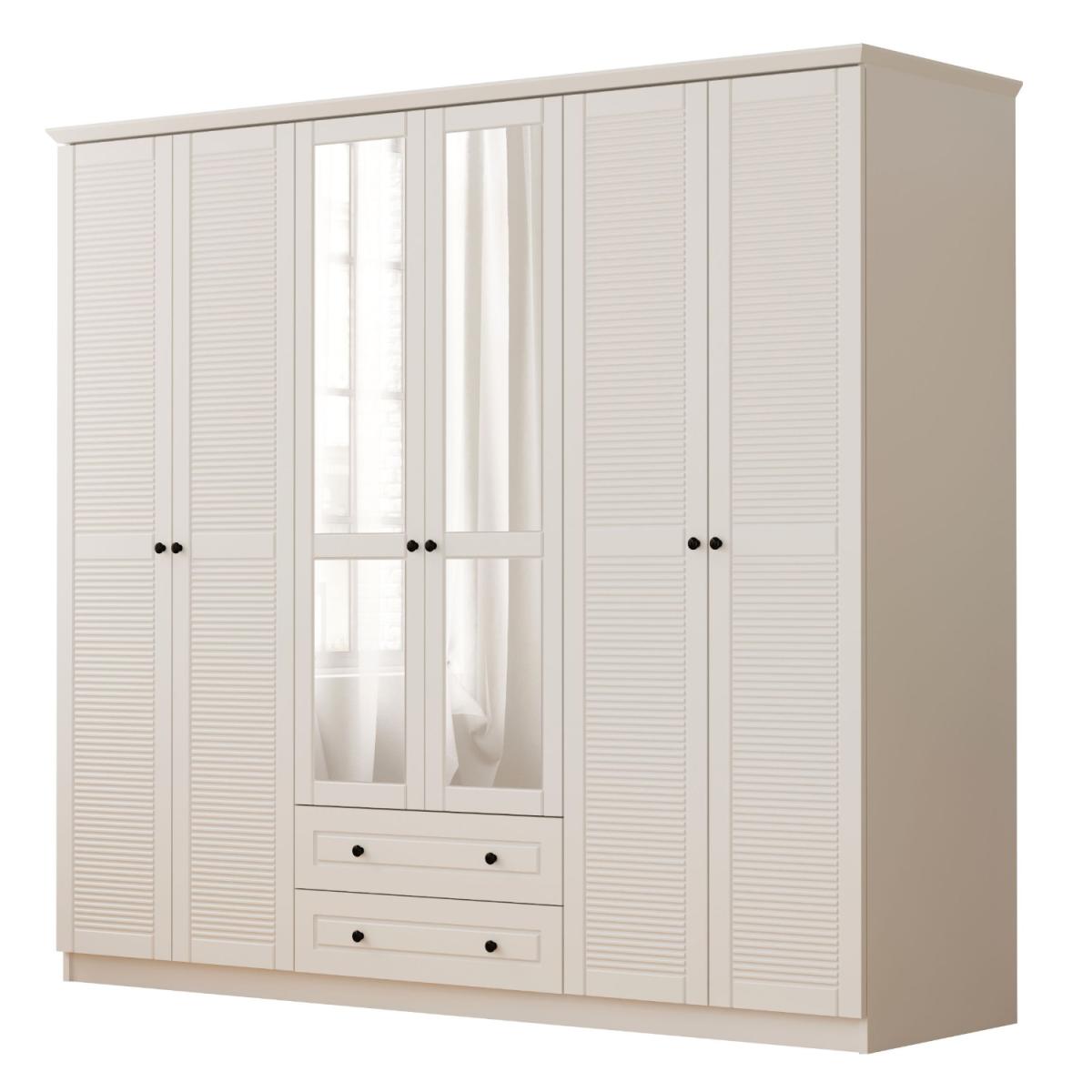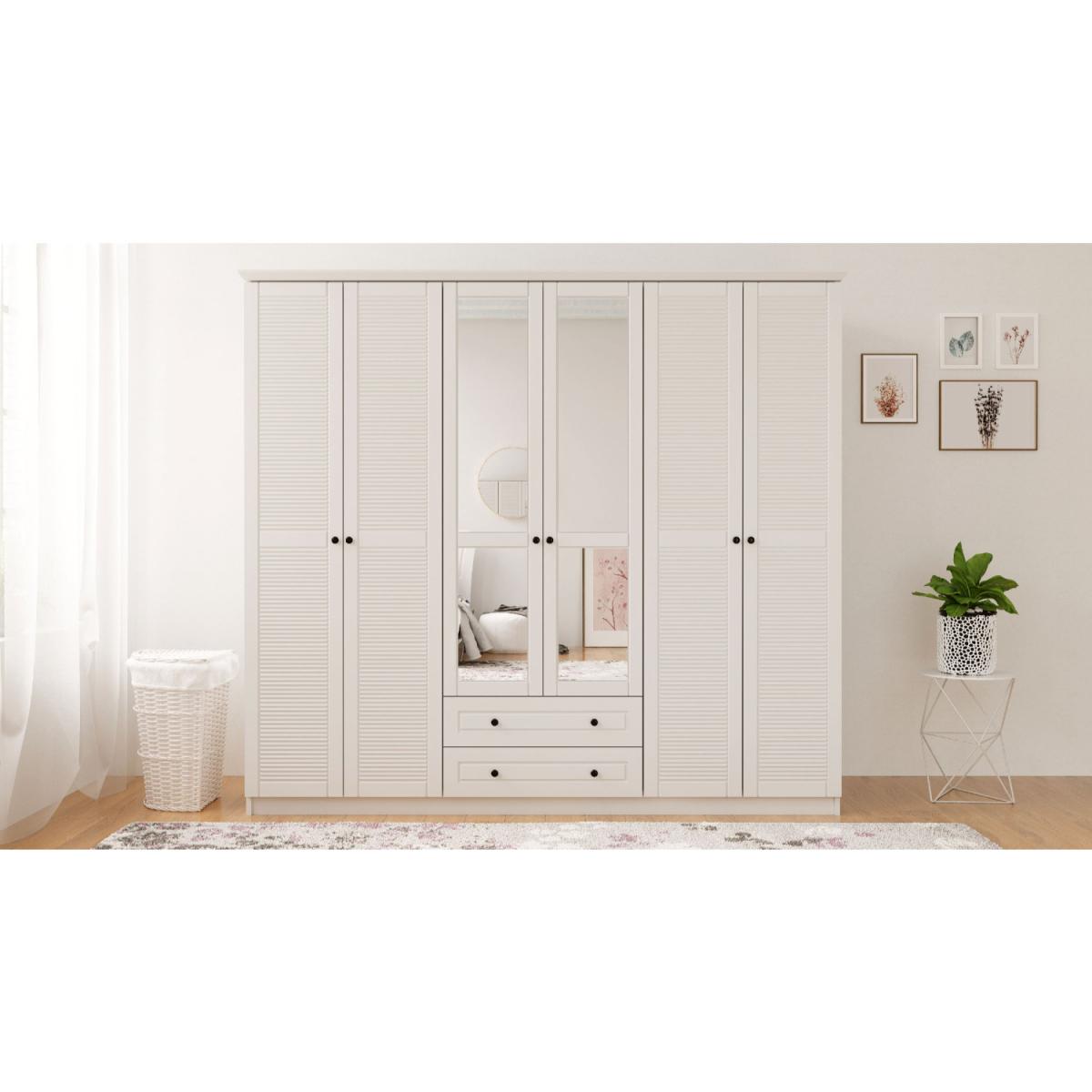 VOLET is a unique blend of French furniture with contemporary, boasting a vintage look. Featuring tapered style cornicing and gunmetal black handles this wardrobe will add an elegant touch to your bedroom. Complete with six doors and two deep drawers this wardrobe is fashioned with a hanging rail and ample storage. The glass mirrors on the doors creates a dressing room atmosphere while reflecting light and space around your room. Colour White Material Membrane coated MDF board, finished with CNC process. Glass Mirror. Dimensions Width210cm,Height210cm,Depth52cm. Delivered flat packed in 7x Boxes. Total Gross Weight178.4kg.!!!IMPORTANT INFORMATION!! Due to the size and the weight of this item, it is shipped out flat packed with 2MA N White Glove Guaranteeed Next Day Delivery Service to your room of choice with PANTHER logistics. After placing your order you can book your delivery by following the email instructions from PANTHER Logistics. !! Once the item is dispatched from our warehouse , cancelation or change of delivery date is subject to 50 charge!! Please note that items can not be left in a safe place or with a neighbour. If you are not happy with this service please let us know before item is dispatched and we will send your item with a standard 2man 7-10 days delivery service instead of next day service.