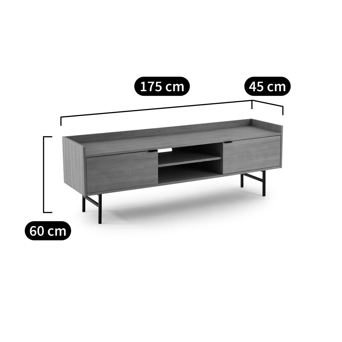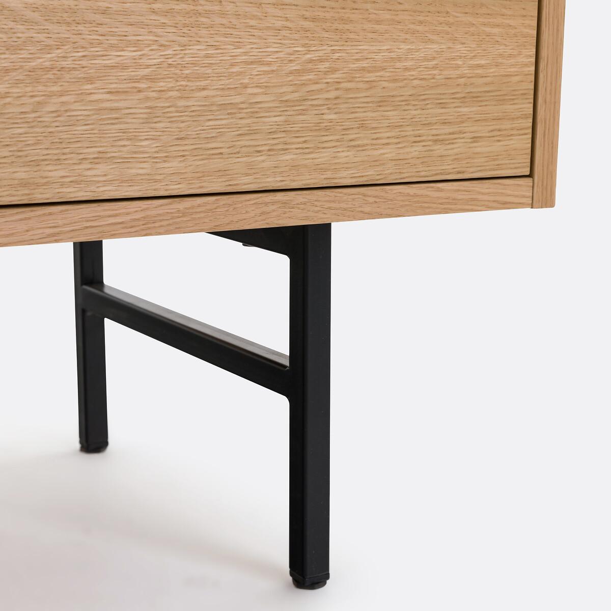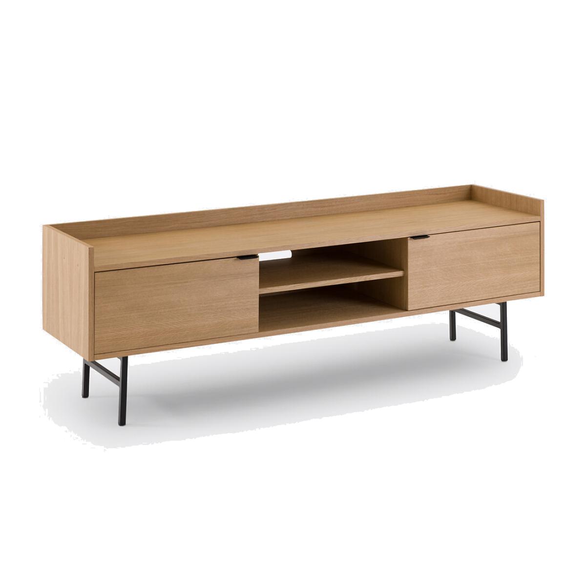 Elegant and contemporary, here is the Volga TV unit: with its XXL storage capacity, it will accommodate all your multimedia devices. Made in Europe. Produced in Europe, Volga is a creation of our designers at La Redoute Interiors. Product Details • Cabinet and shelves in oak veneered particle board, nitrocellulose varnish finish • 2 cupboards, 2 shelves: adjustable shelves (3 positions) • In the centre : 2 compartments • Steel handles, black paint, epoxy finish • Steel tube legs, black paint, epoxy finish • Polyethylene feetDimensions. Total: • L175 x H60 x D45cm. Usable dimensions: • 2 compartments behind 2 doors: L55 x H26 x D42cm • 2 compartments (central part): L57 x H12 x D42cmDelivery:. Assembly required. Available for home delivery. Note! Please check that all access points are large enough to accommodate your delivery (doors, stairs, lifts). • Made in Europe. • WOOD FROM SUSTAINABLY MANAGED FORESTS. FSC® certified wood comes from forests that are environmentally, socially and economically well managed. Dimensions and weight of parcel2 parcels • L214 x H11 x D52cm, 33.5kg. • L74 x H16 x D49cm, 18.6kg.