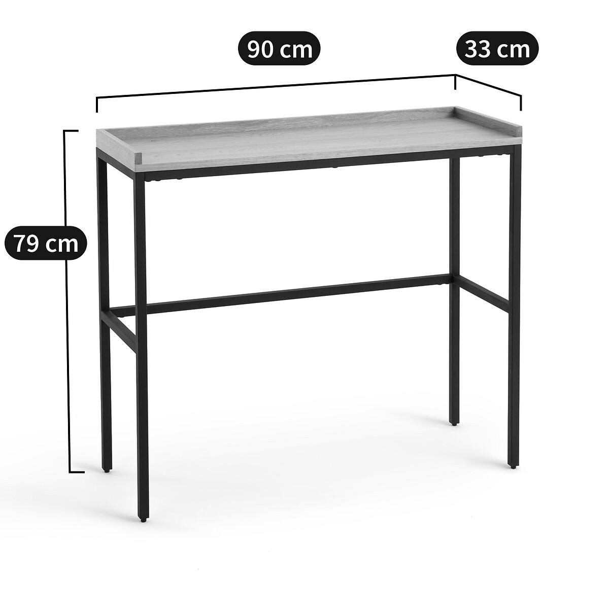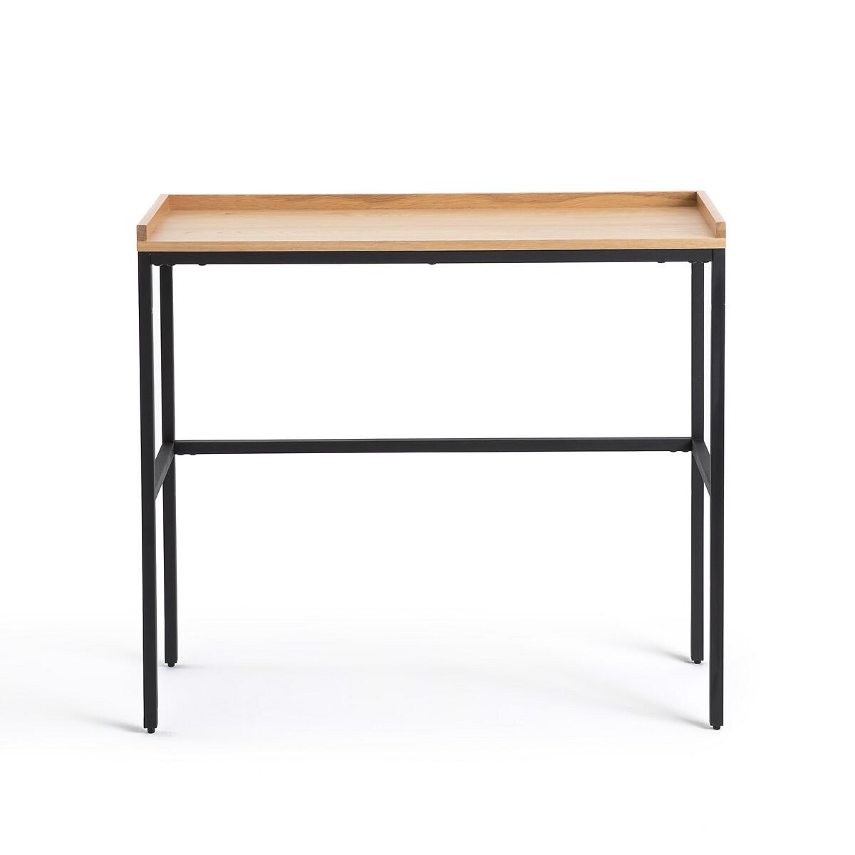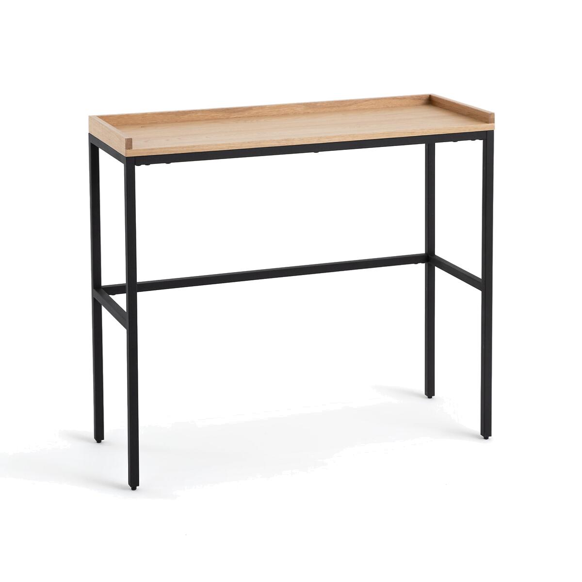 The Volga oak and metal console stylishly combines the warmth of wood and the contemporary feel of metal. Perfect for displaying your favourite objects - or to use as a desk. Product Details • Structure and base in steel tube, matt black paint, epoxy finish • Top: solid oak rim, oak veneered MDF top, nitro cellulose varnish finish • Plastic feet padsDimensions. Overall • Length 90cm • Height 79cm • Depth 33cm. Usable dimensions of top • Width 87cm • Height 77cm • Depth 31.5cmDelivery:. This product requires assembly. Dimensions and weight of parcel • 1 parcel • L100 x H17 x D33cm. Weight 20kg