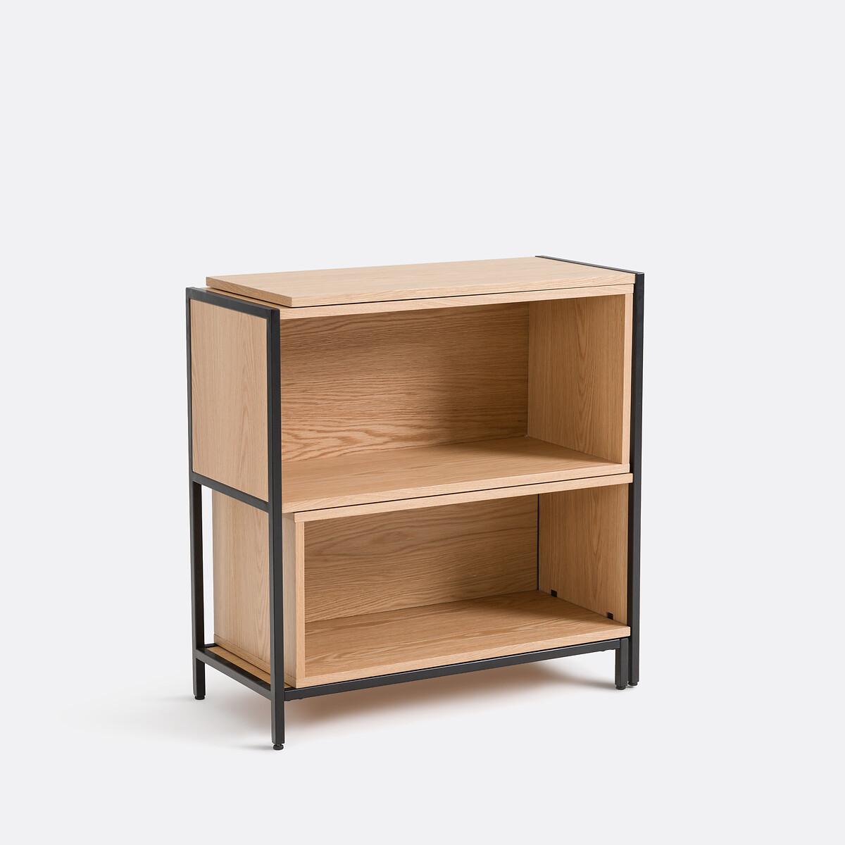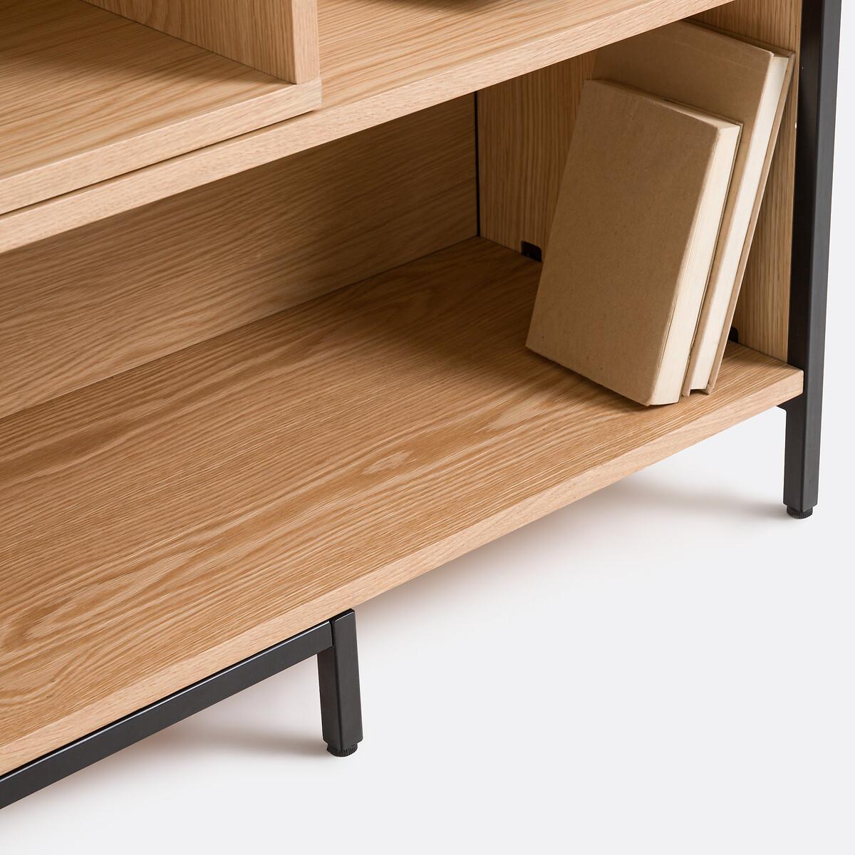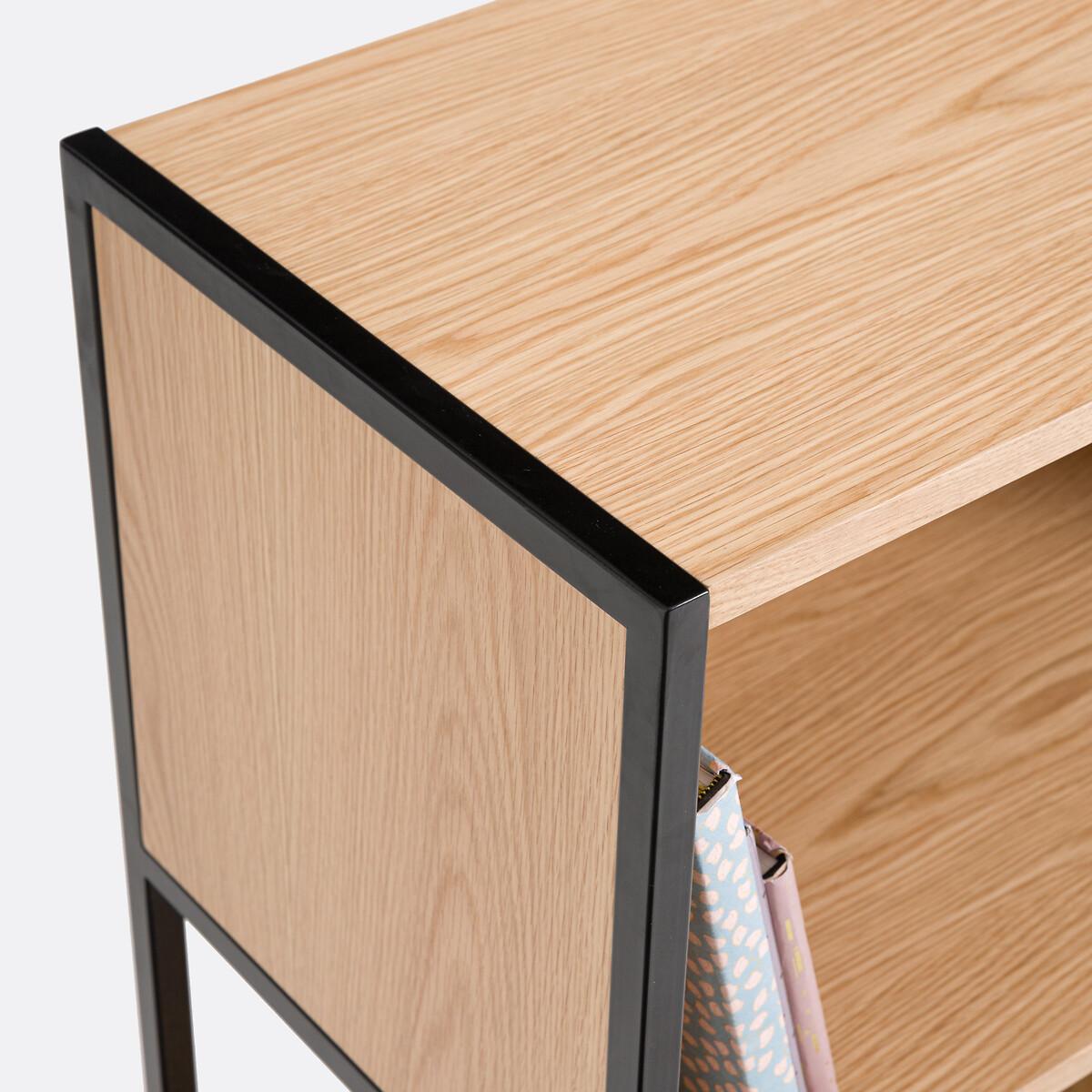 The Volga reversible console table is part of our Les Ingénieux collection. Creations full of ideas to make life simpler and everyday life more beautiful, imagined by our designers in France..Changing the interior without changing everything, what we all dream of. With The Volga, the dream becomes a reality. It can be transformed to how you want it. It extends and folds into a corner unit to enhance its use. What a way to reinvent your interior in a few simple movements. Why you'll love it • Really flexible: 3 possible variations to adapt to all interiors. • 2 shelves, deep but not too deep : designed for books but with space for other items • The marriage of metal and oak veneer: to suit all styles. Product Details • 2 open compartments in oak veneered MDF with nitrocellulose finish • Base and rails in black iron with epoxy finish • Polypropylene adjustable glides • Sliding and foldable • Wall-mounting system (screws and plugs not supplied) • People required for assembly: 2Dimensions. Overall • Width: 75/125cm • Height: 84cm • Depth: 37cm • Height of legs: 8cm/3" • Weight: 38kg. Usable space • Left-hand compartment: L76 x H34 x D35cm • Right-hand compartment: L74 x H30 x D35cm • This product requires assembly. • WOOD FROM SUSTAINABLY MANAGED FORESTS. FSC® certified wood comes from forests that are environmentally, socially and economically well managed. Dimensions and weight of parcel2 parcels • L100 x H20 x D47cm. 23kg • L95 x H16 x D47cm. 23kg