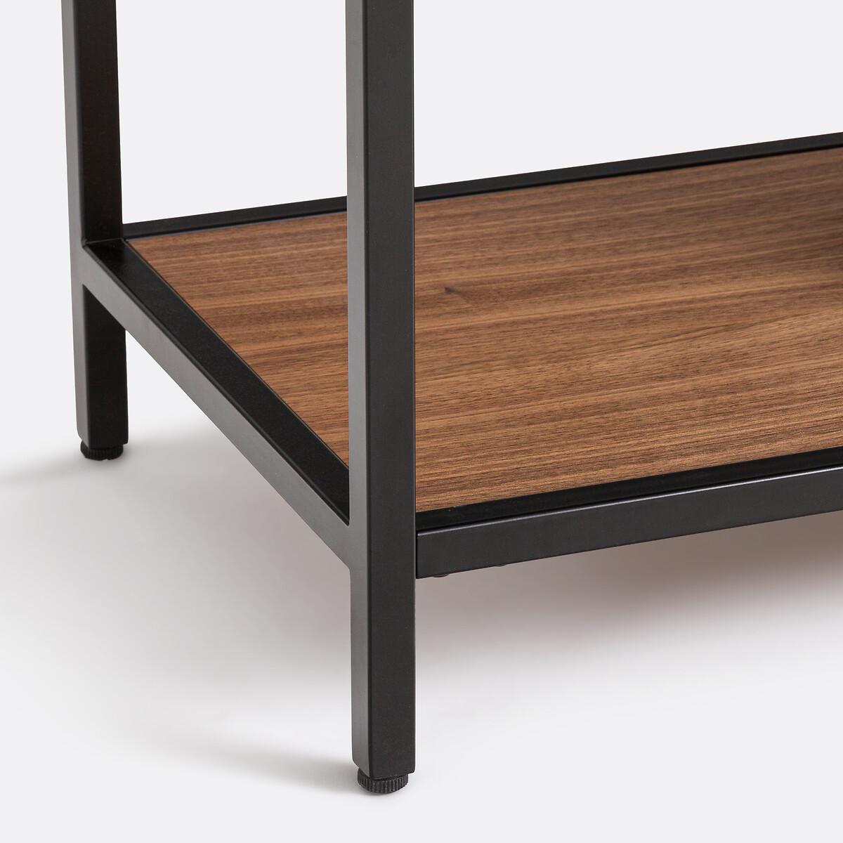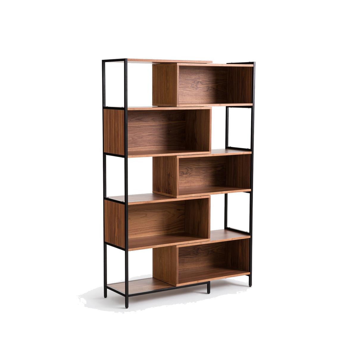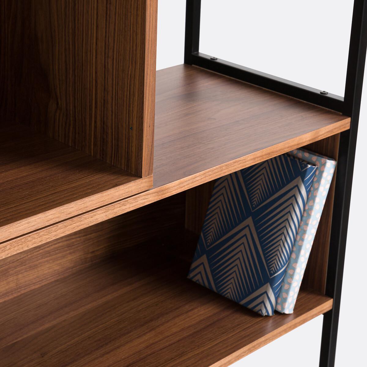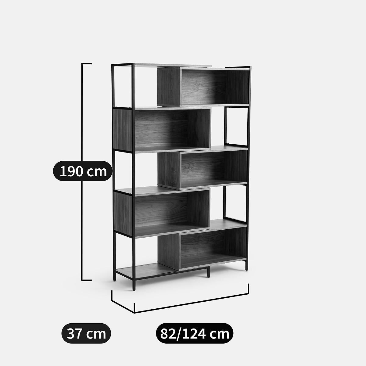 The Volga volte-face unit is part of our Les Ingénieux collection.. Creations full of ideas to make life simpler and everyday life more beautiful, imagined by our designers in France..Changing the interior without changing everything, what we all dream of. With The Volga, the dream becomes a reality. It can be transformed to how you want it. It extends and folds into a corner unit to enhance its use. What a way to reinvent your interior in a few simple movements. Why you'll love it • Really flexible: 3 possible variations to adapt to all interiors. • 5 shelves deep but not too deep: designed for books but with space for other items • The marriage of metal and walnut veneer: to suit all styles. Product Details • 5 open boxes in walnut veneered MDF finished in nitrocellulose varnish • Base and rails in black iron with epoxy finish • Sliding and foldable • Polypropylene adjustable glidesDimensions. Overall • Width: 82/124cm • Height: 190cm • Depth: 37cm • Height of legs: 10cm/4" • Weight: 91kg. Usable space • Right hand boxes: L74 x H30 x D35cm • Left hand boxes: L76 x H34 x D35cm • This product requires assembly. • WOOD FROM SUSTAINABLY MANAGED FORESTS. FSC® certified wood comes from forests that are environmentally, socially and economically well managed. Dimensions and weight of parcel3 parcels • L208 x H15 x D47cm. 34kg • L88 x H20.5 x D47cm. 36kg • L86 x H21 x D47cm. 34kg