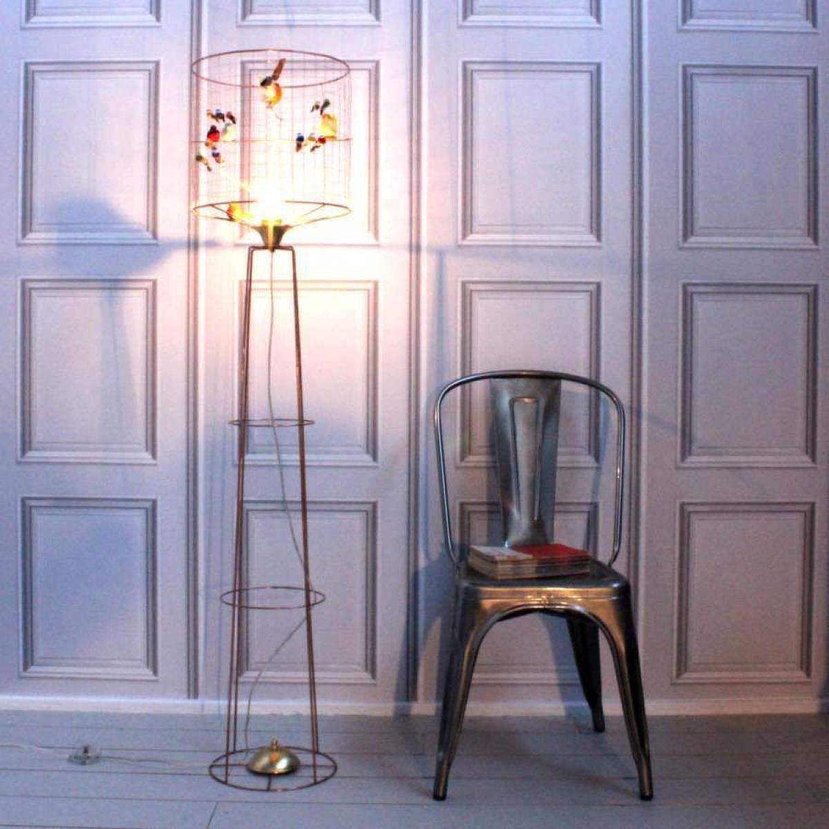 This delightful Voliéres Bird Cage Floor Light is perfect for those who wish to embrace the eccentric in themselves. The wire cage is home to a menagerie of pretty coloured birds made from real feathers that have been ethically sourced. As each light is individually hand made the colours and assortment of birds will be different to the photograph.