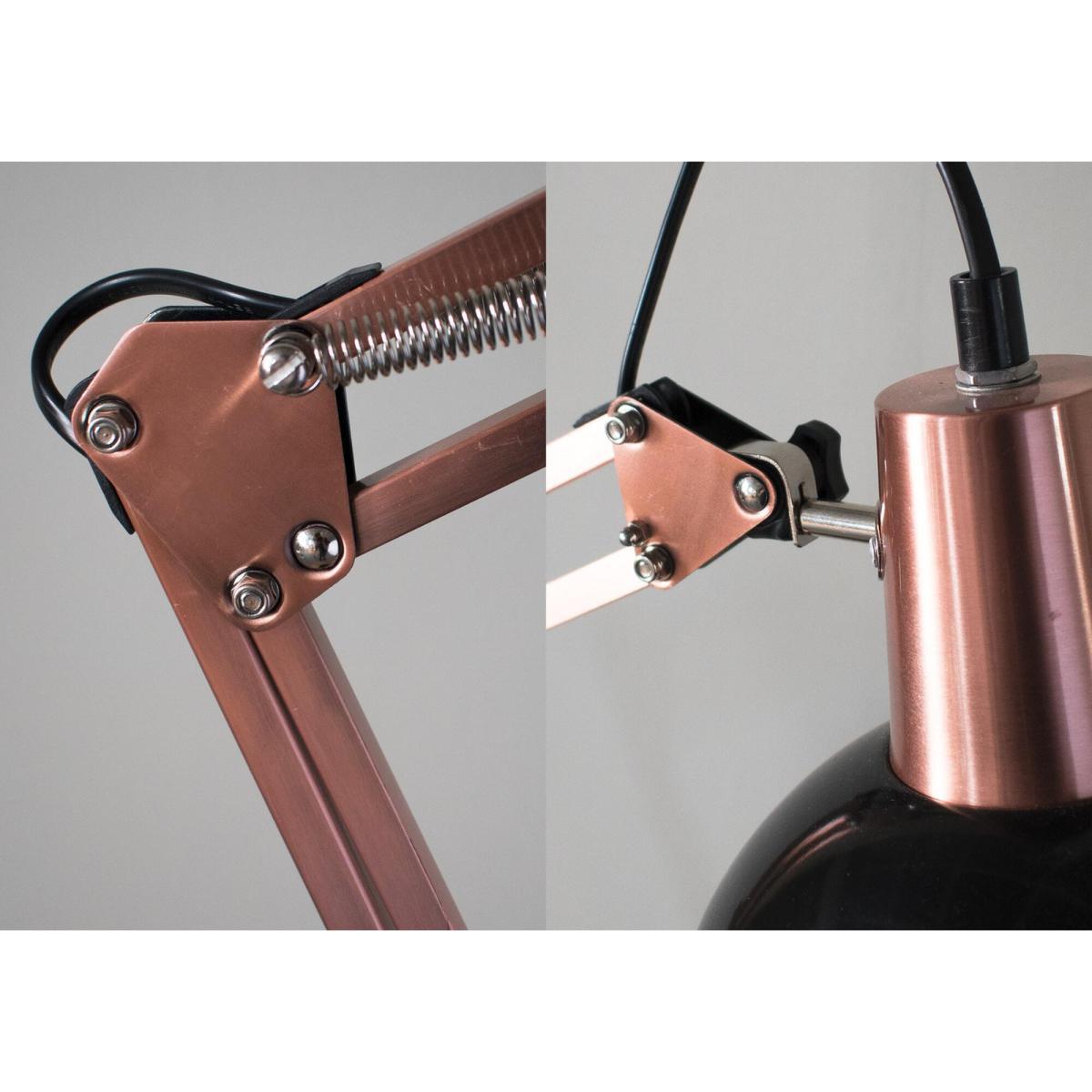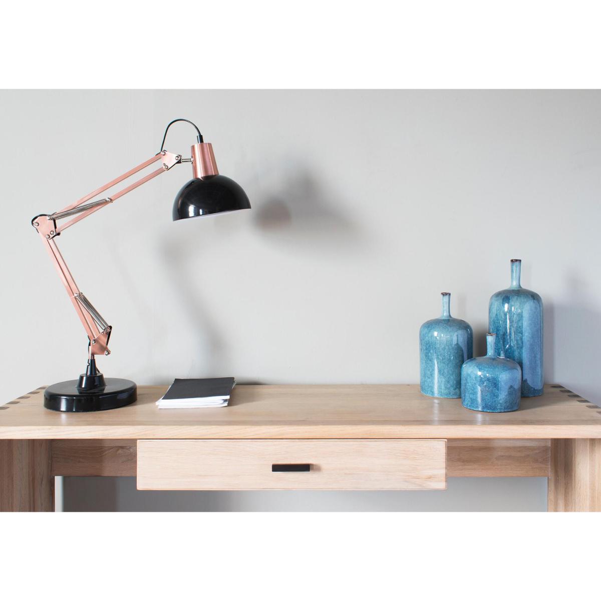 This lamp in bronze and black is a versatile piece that adds an industrial yet refined touch to a variety of interiors. I love how its sleek silhouette and contrasting finishes can work equally well in modern, minimalist schemes or more eclectic spaces. It’s ideal for a desk or side table, providing functional task lighting with stylish flair. To style it effectively, I’d recommend pairing it with neutral-toned furniture and simple accessories to let the lamp stand out, or layer it with other metallic accents for a cohesive look. Its adjustable arm makes it practical for directing light exactly where you need it, making it both a practical and aesthetically pleasing addition to any room.