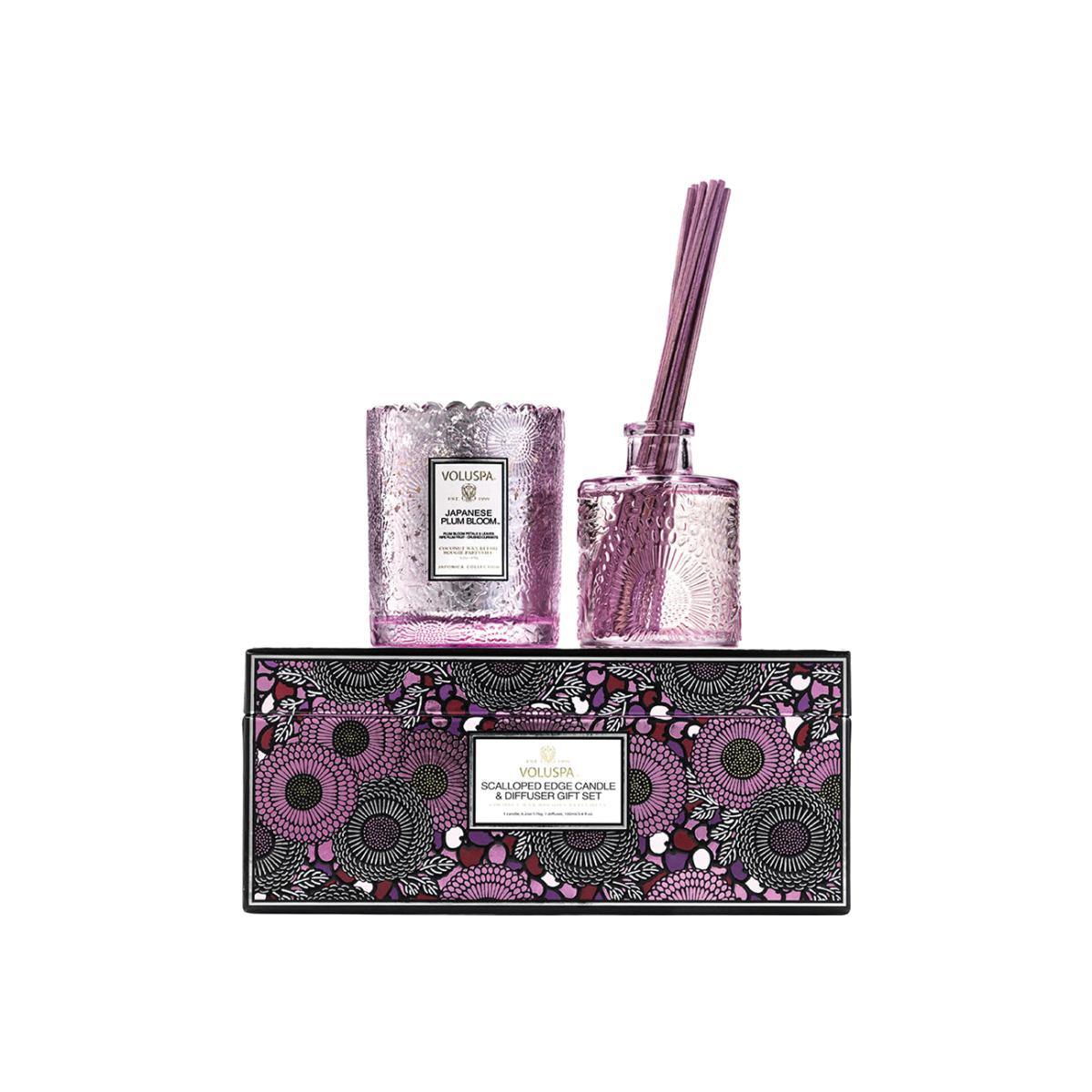 Voluspa - Scalloped-Edge Candle & Diffuser Gift Set - Japanese Plum Bloom