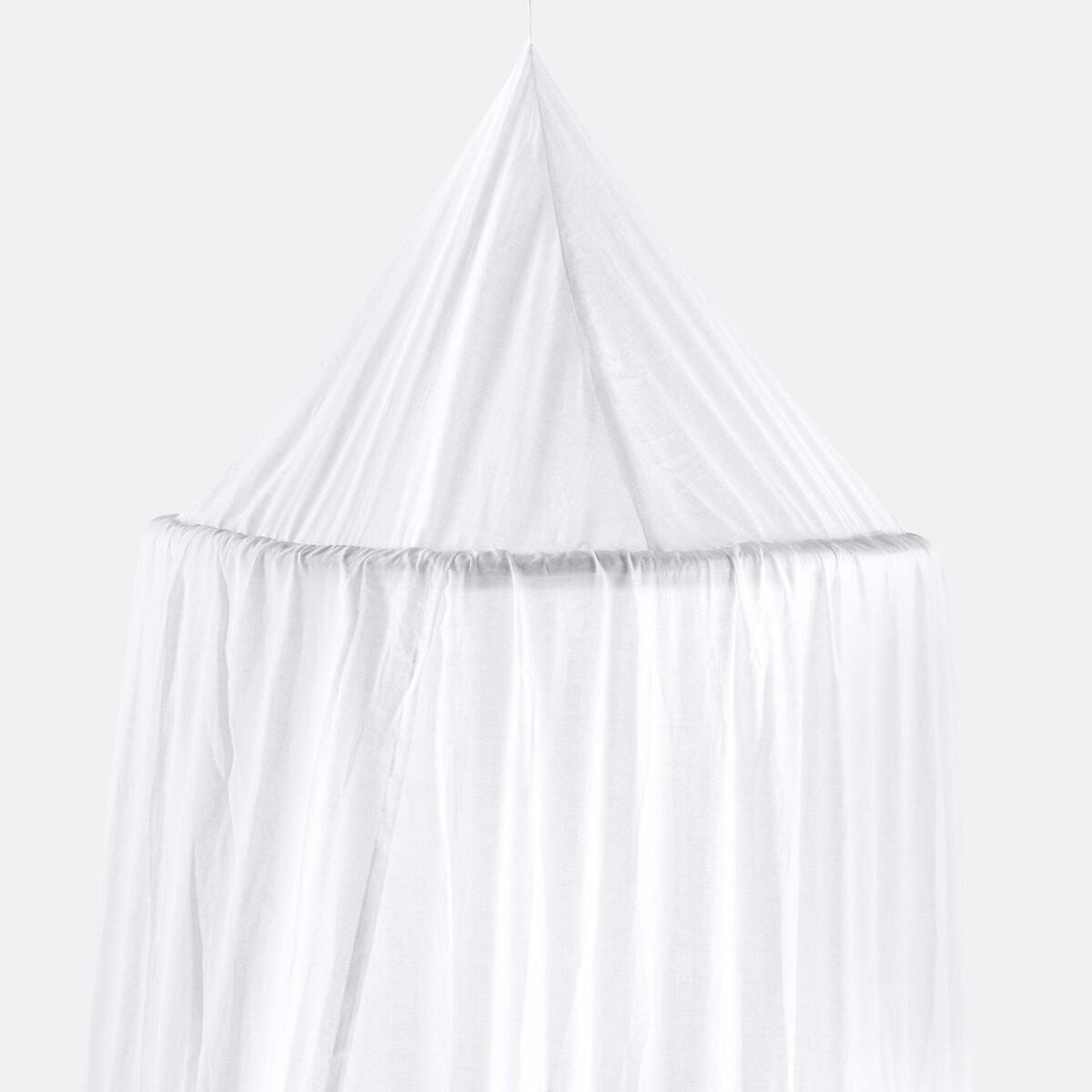 Soothing and protective, this cotton bed canopy will create a cosy nest in your child's room, providing reassurance at bedtime!Product Details • Composed of a hoop and a cotton veil curtain, it hangs from the ceiling via a fabric loop. • Cotton voile • 100% cotton • Zip closure to attach the curtain to the ring and allow easier washing Care Advice • Machine washable. Dimensions • Height 260 x Diameter 50 cm (curtain height x hoop diameter)