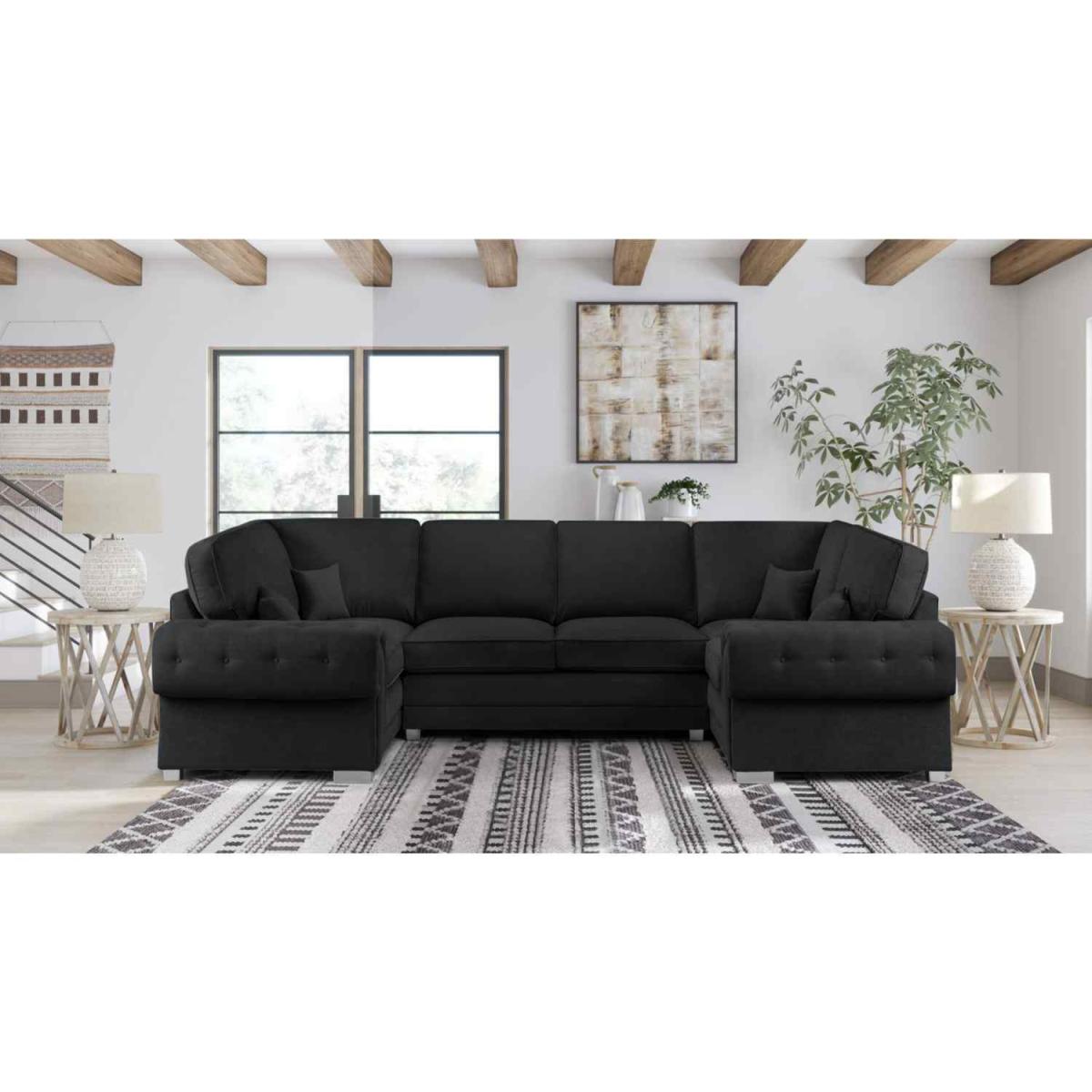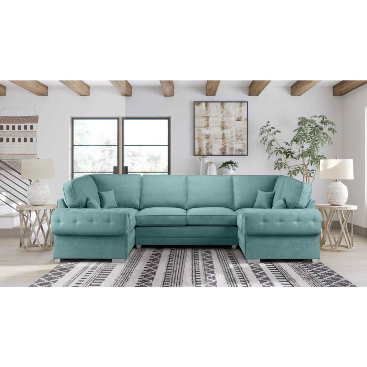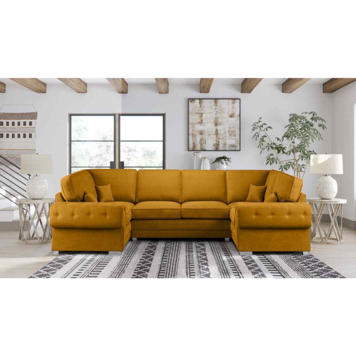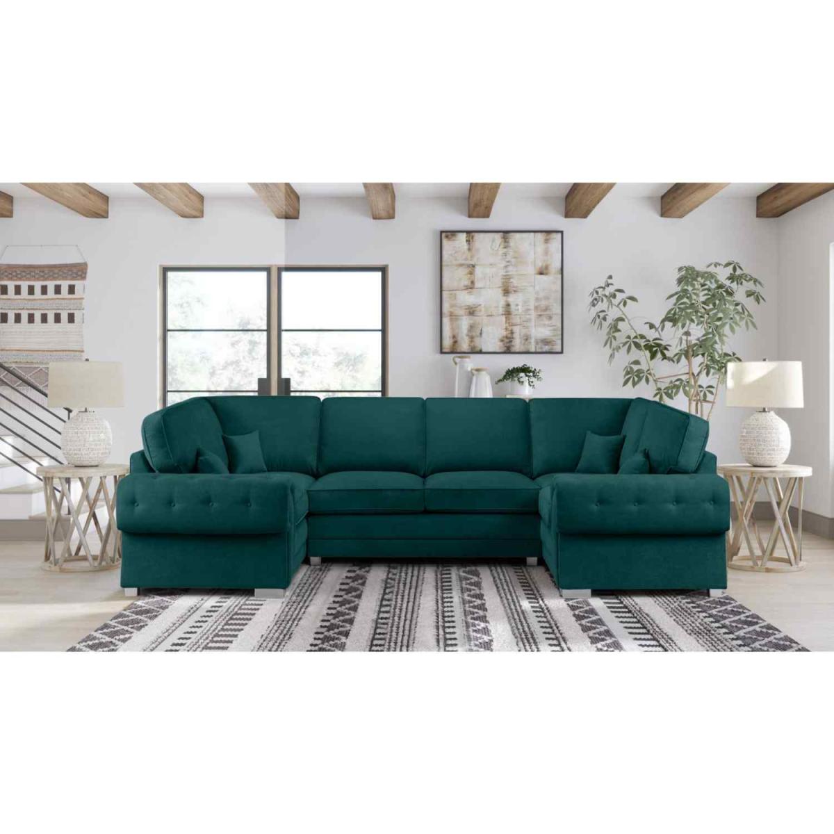 I love this red U-shape sofa for its bold colour and plush velour fabric, which instantly creates a statement in any living space. It works especially well in modern or eclectic interiors where colour pops and textures are key. Its large, full-back design makes it perfect for socialising or for curling up with a good book. To style, consider keeping the surrounding decor neutral to really let the sofa stand out, or add contrasting cushions in patterns or metallic finishes for added interest. Practical tips include pairing it with a low coffee table for a cosy feel and using soft throws and cushions to soften the look and enhance comfort.