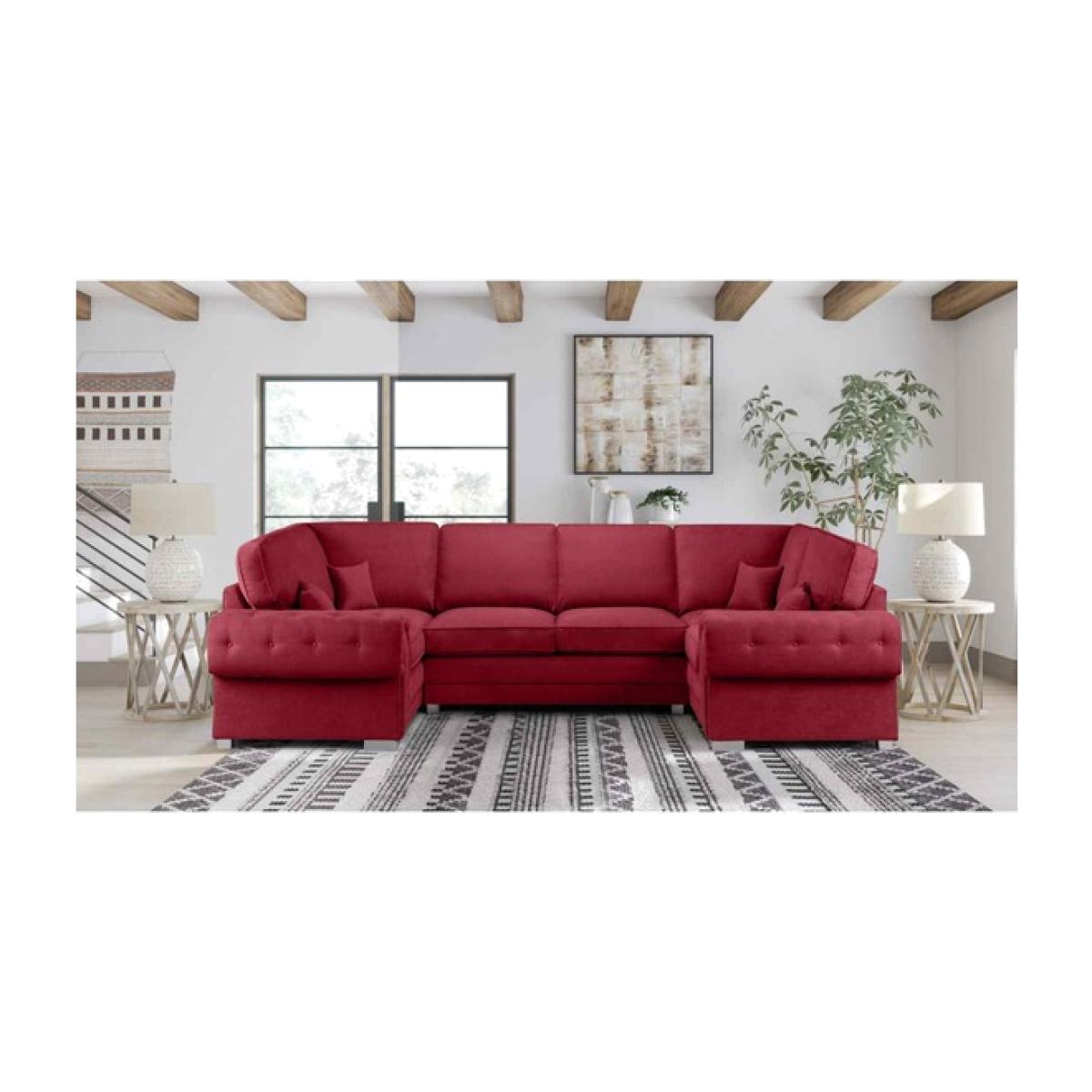 Volvo U Shape Large Sofa Full Back Velour Velvet Fabric - Red