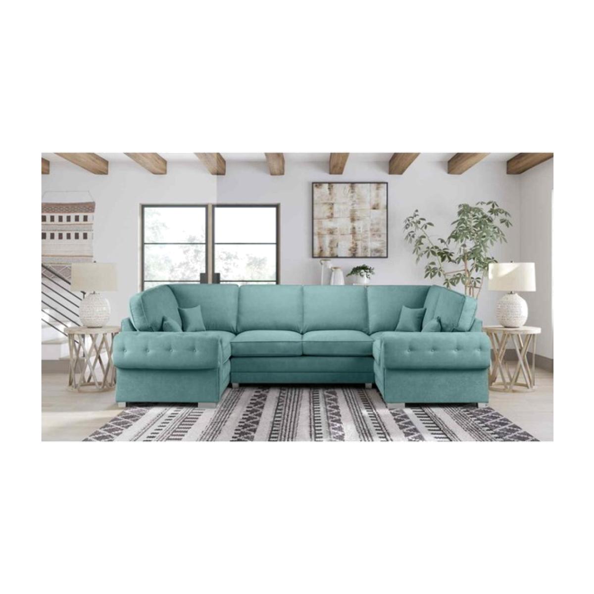 UK Large U shape sofa, premium plush velour fabric, this beautiful sectional sofa includes a solid hardwood frame used and expert upholstery, this sofa is sure to be a crowd-pleaser! This beautiful model will add a modern and inspiring look to your living room. Available in many colours.