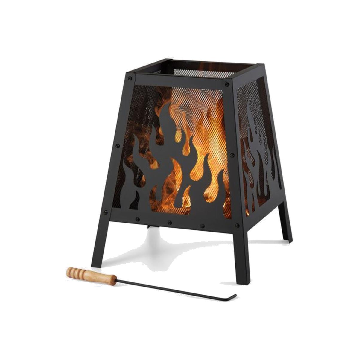 Add a subtle yet striking centrepiece to your outdoor space with our square fire pit. Enhanced with a long-lasting powder-coated finish, the steel fire pit boasts both strength and style. Its square build and sleek black colourway create a minimalist feel, framing the intricate flame design effortlessly.