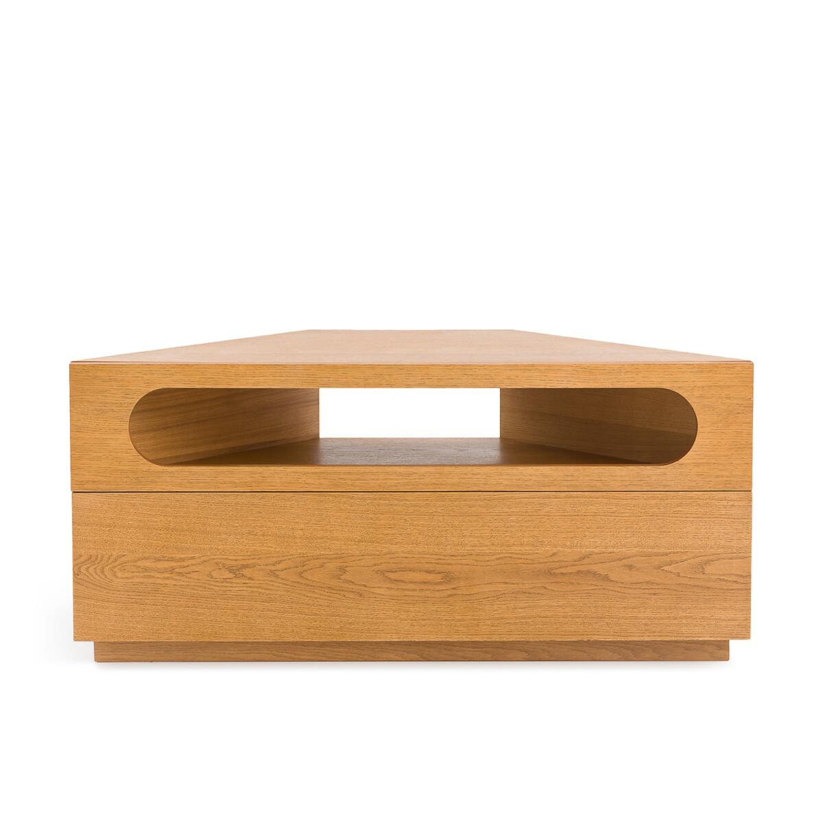 This modern corner unit is a stylish and practical addition to contemporary living spaces. I love how the oak veneer finish adds warmth and texture, making it versatile enough to suit both minimalist and Scandi interiors. Its clean lines and geometric shape work well when paired with neutral tones or layered with textured soft furnishings. Practical styling tips include keeping the top clear for a statement piece or decorative accents, and using the open shelf for media devices or display items. It’s perfect for maximising space in smaller rooms or adding a sleek focal point in larger open-plan areas.
