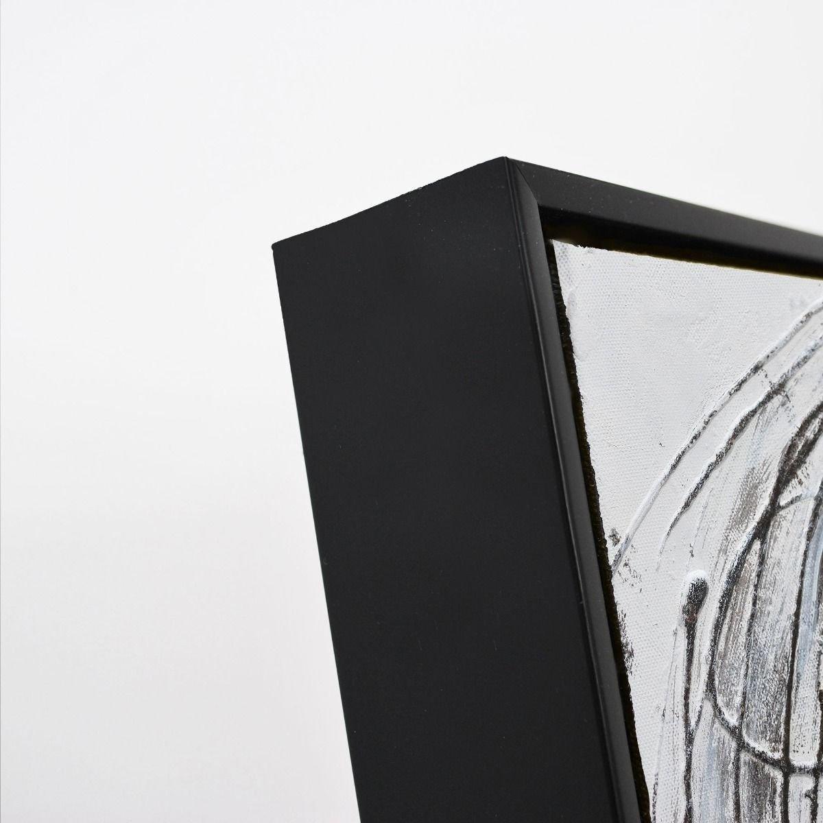 Contemporary black swirl hand-painted wall art with modern black outer frame. A unique and interesting print, this Vortex Wall Art is hand-painted onto a canvas background and framed in black. An interesting design, this canvas boasts a mesmerising hand-painted swirl on a monotone background. Boldly framed in black, this print is perfect for any interior style.