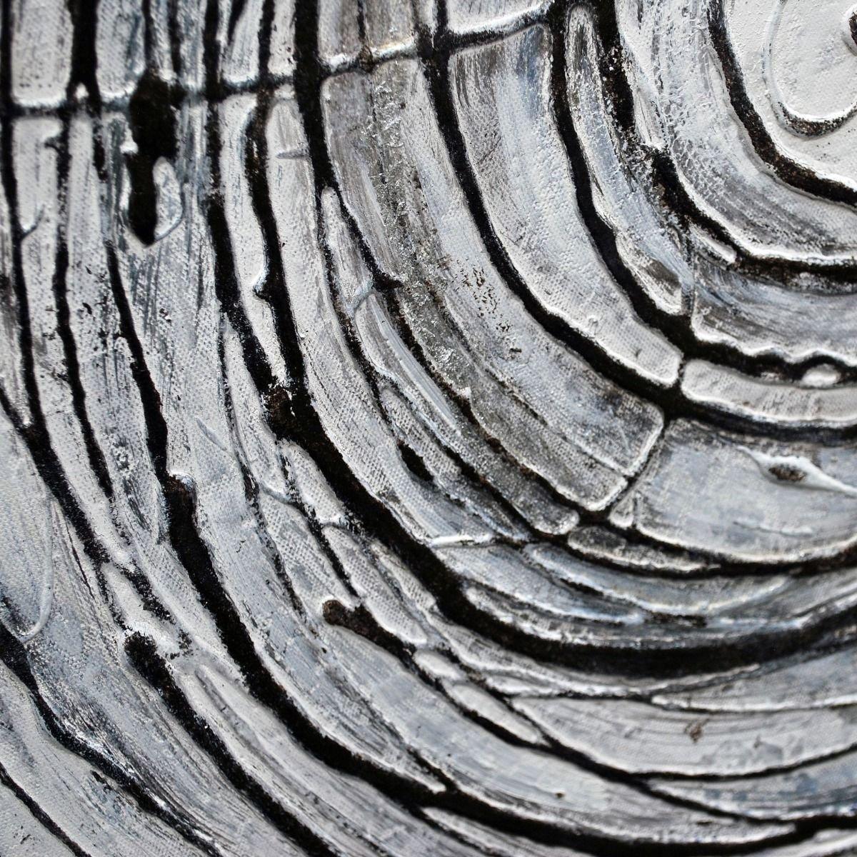 I love this piece for its striking abstract design and monochrome palette, which makes it incredibly versatile. It works well in contemporary and minimalist interiors, offering a bold statement without overwhelming the space. For styling, consider hanging it above a neutral sofa or sideboard to create an eye-catching focal point. Pair with sleek black or metallic accessories to enhance its modern vibe, or introduce textured textiles in softer tones nearby to add contrast. Due to its versatile size, it’s perfect for a gallery wall or as a standalone feature in smaller rooms. Just make sure it’s at eye level when hung for optimal viewing.