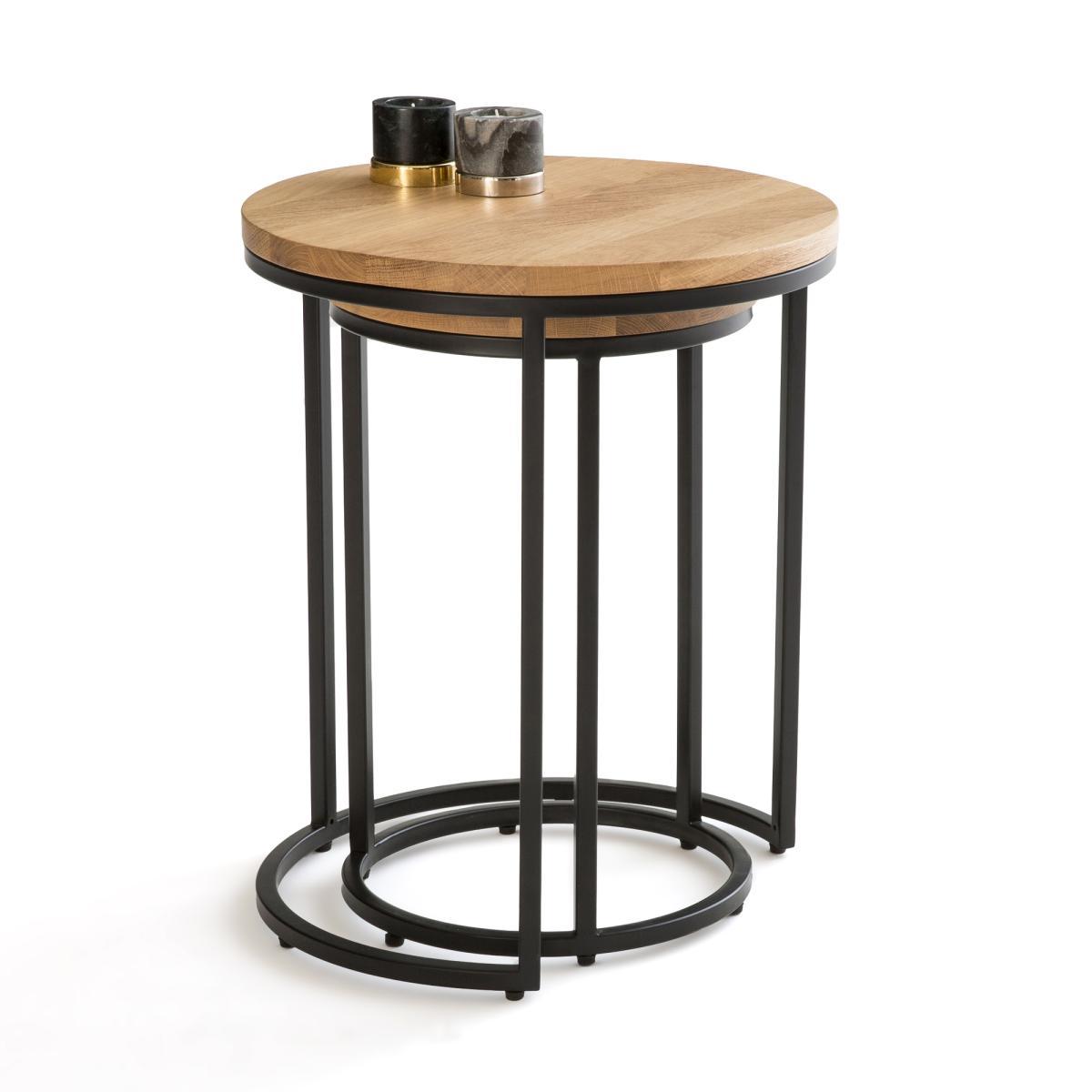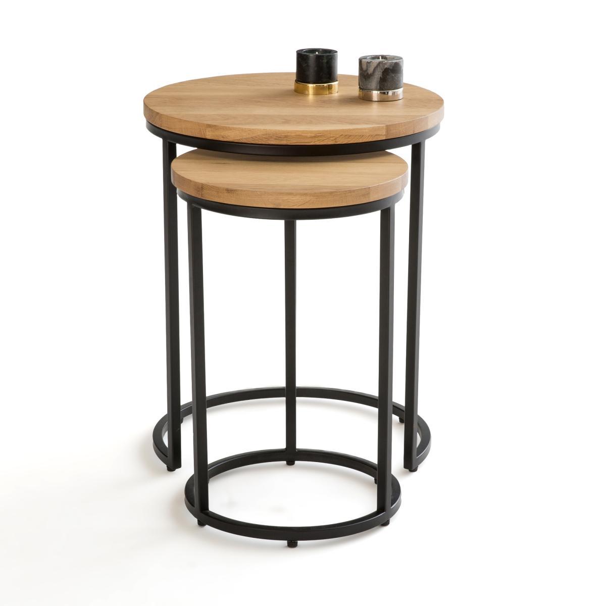 Made from solid oak with a contrasting black metal frame, these neatly nesting side tables set a smart and sober tone: beautifully rounded for an aesthetic and space-saving shape, they will soon find a place in your home.