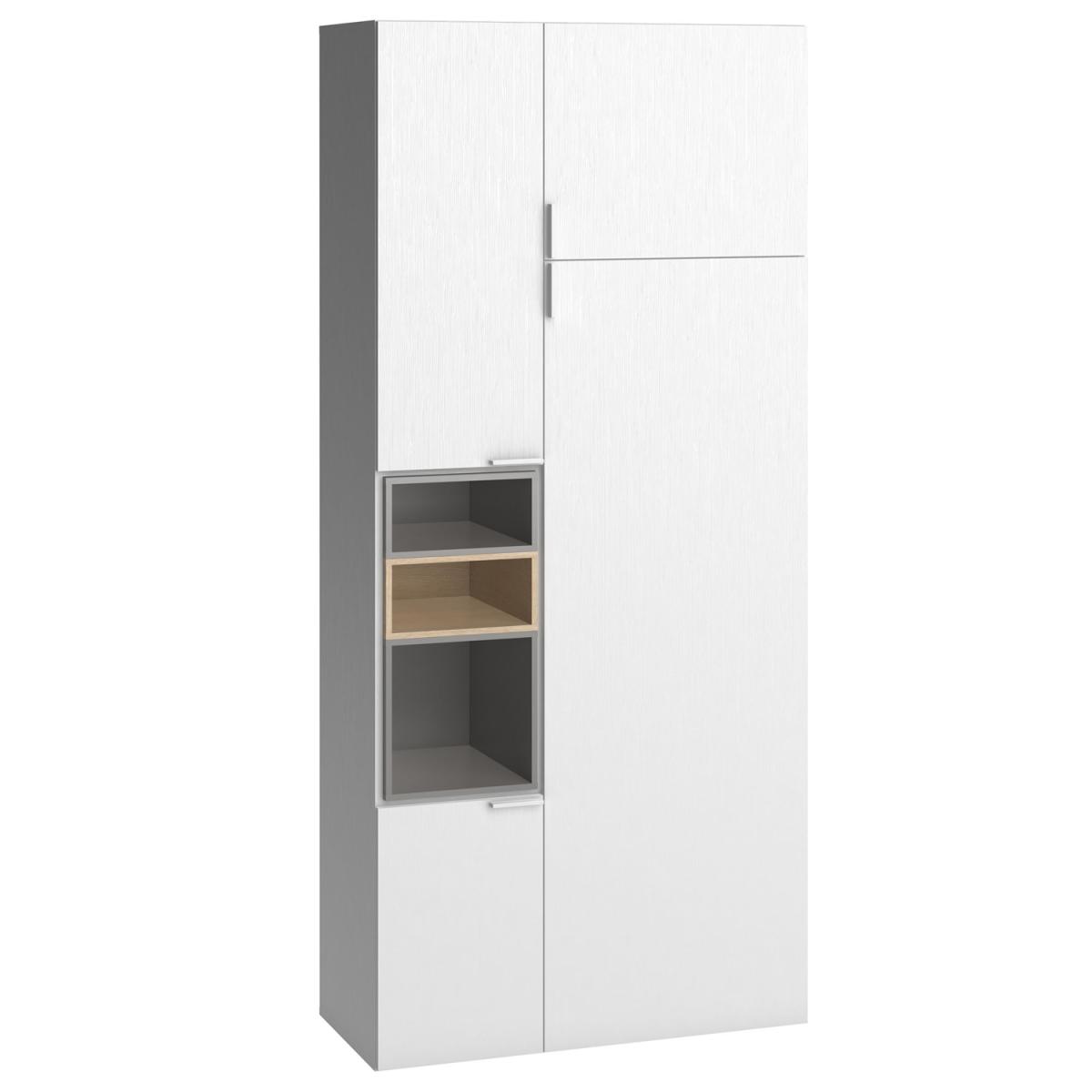 The 4 You 2 Door Cabinet with Built in Storage, in White, is part of an exceptional range of cross purpose furniture from Vox - a brand who sure know how to design and manufacture functional. Furniture. That does not compromise on style. To the right of this fabulous wardrobe is a convenient sliding hanging rail - a great way to ensure that all of your clothes are easily accessed - and an upper shelf for further storage, to the left there are adjustable shelves, perfect for folded items, and open alcoves for displaying your favourite family pics. Why not add the matching storage boxes to add interest and create additional compartments! Another brilliant feature is the soft close function on the wardrobe door. Not limited to the bedroom, this storage cupboard could also be used in any living space to create practical and stylish storage, team with other items from the 4 You range and your home will ooze contemporary living. Constructed from laminated board, this wardrobe is finished to an exceptional standard.