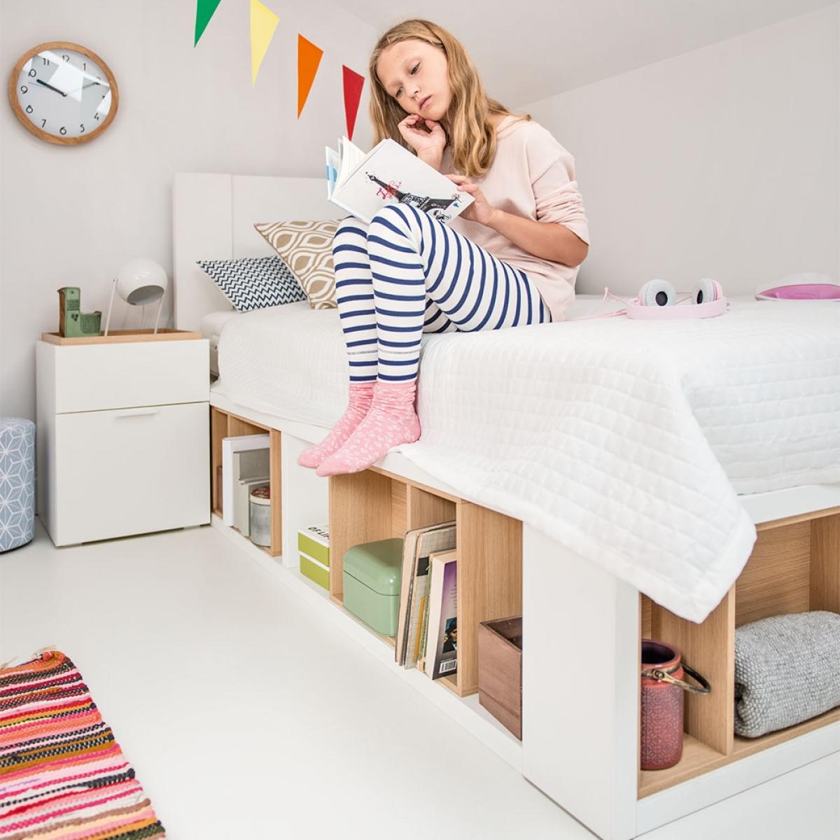 Here is a super example of uncomplicated style, the 4. You Bed with Storage Shelves in White from the 4. You collection by Vox is a modern bed designed with modern life in mind. Around the base of the bed there is space to add storage boxes (available separately from Cuckooland), and plenty of room to organise your bedtime reading itinerary. Available in either European King (160cm x 200cm) or European Small Double (120cm x 200cm) this unique, luxury bed is perfect for kids, teens and adults alike and is a great addition to a neutral, Scandi-style bedroom. Vox have created this unique. Furniture. Range to meet the needs of every consumer - it's time to embrace stylish, functional furniture, designed 4. You!.