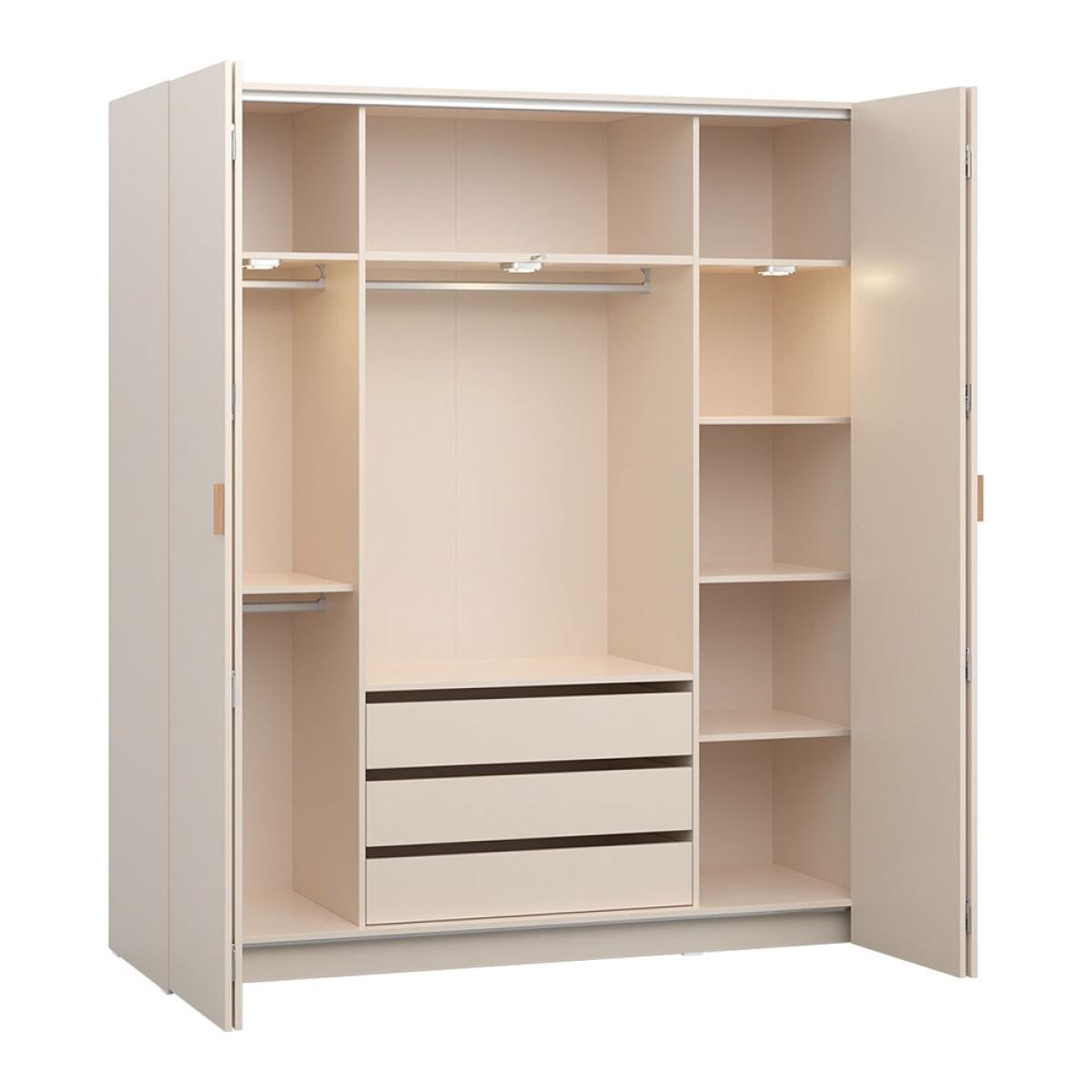 The Vox 4 You Fresh Bifold Four Door Wardrobe with Built in Drawers is not only a gorgeous piece of furniture, it can also be adapted and configured to suit your storage needs. Available in 2 heights; 206cm, 240cm, each wardrobe has lots of hidden features and compartments; the perfect wardrobe storage with bi fold wardrobe doors for keeping your home organised! As standard all sizes feature 3 internal drawers, a central hanging rail with shelves above and further hanging on the side for suits and dresses. On the other side, the height adjustable shelves would be suited to storing shoes and accessories, with 4 included inside the 206cm and 5 in the 240cm which also boasts an additional shelf above the drawers! With a pop-out hook, select your outfit and get yourself ready for the day! Remove the upper central shelf and add the pull-down clothes rail to easily access your favourite pieces. Constructed from laminated board, finished to an outstanding quality with great attention to detail, this stylish addition is sure to serve you for many years.