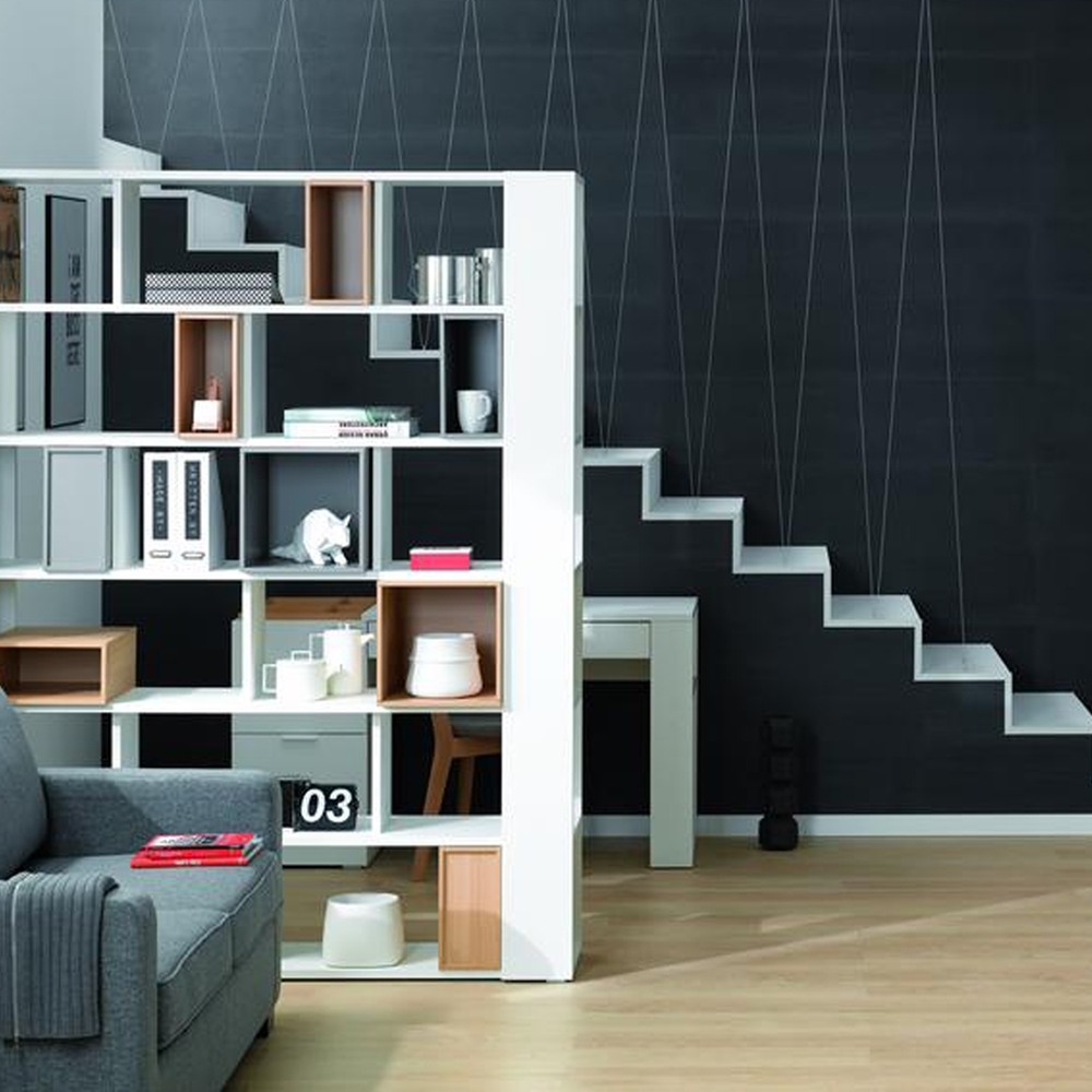 The 4. You Shelving Unit, in White, is part of an exceptional range of cross purpose furniture from Vox - a brand who sure know how to design and manufacture functional. Furniture. That does not compromise on style. Create a feature wall in your living space or add to the end of the 4. You Four Poster Bed and fill this display unit with books, ornaments, prized trophies. In fact the list is endless. Typical of Vox, this is no ordinary bookcase, it's clever design, being open on both ends, means that you can access all areas with ease! Add some cool storage boxes for a unique system that keeps your home looking organised (oh how we dream of this!). Constructed from laminated board and finished to the highest standard, you will not bedisappointed with this brilliant storage solution.