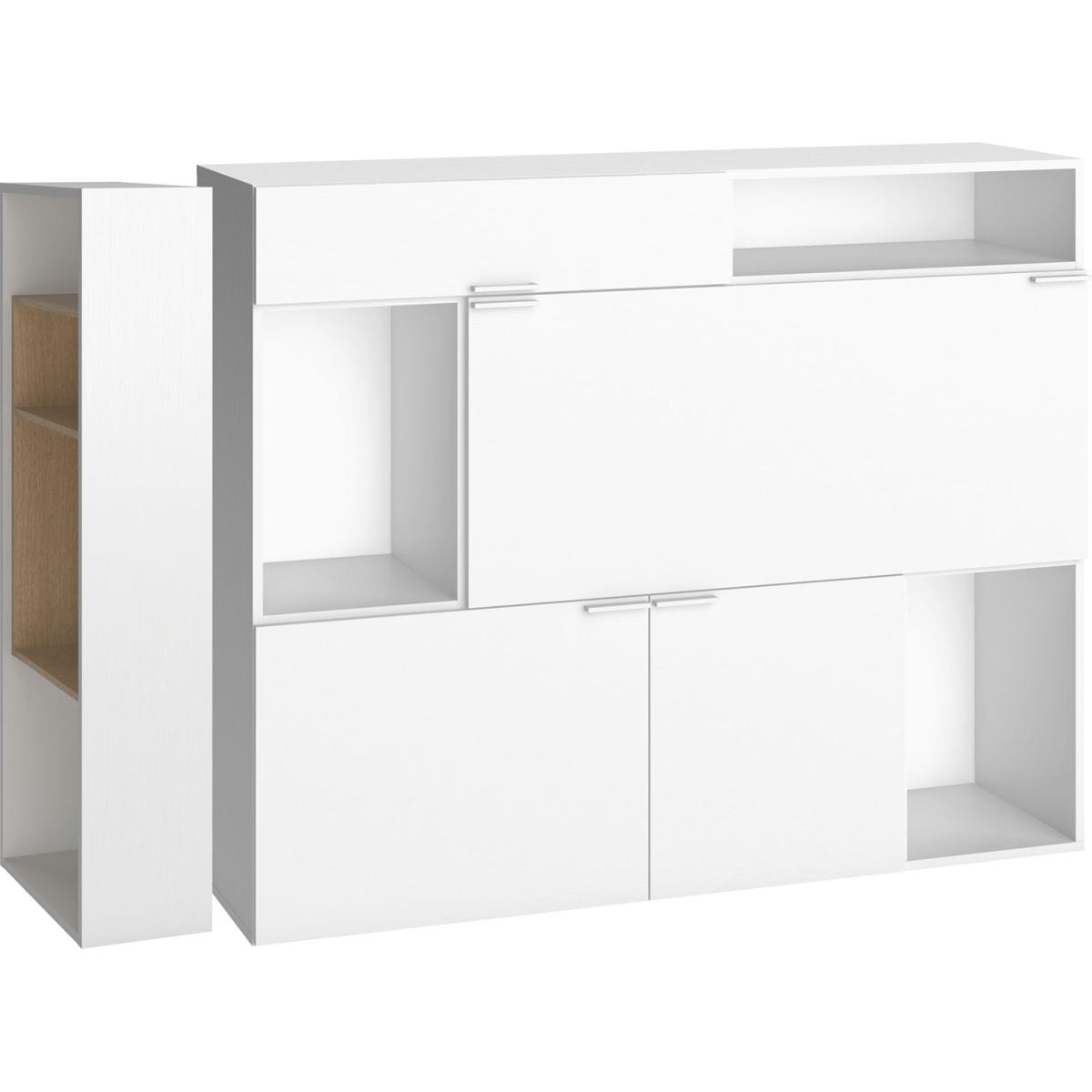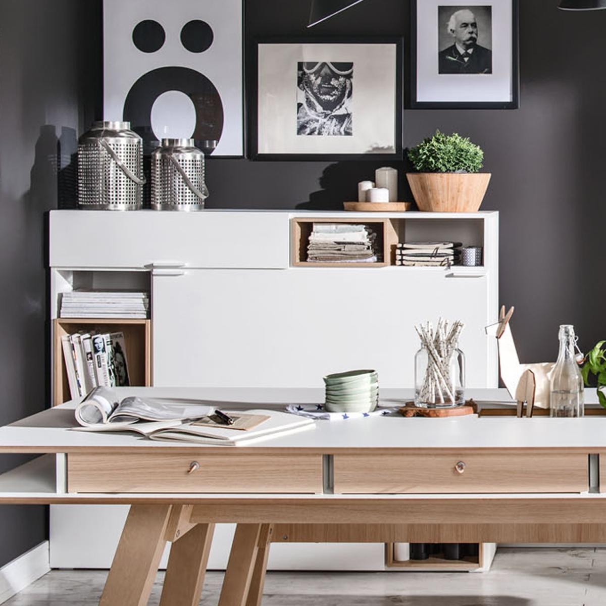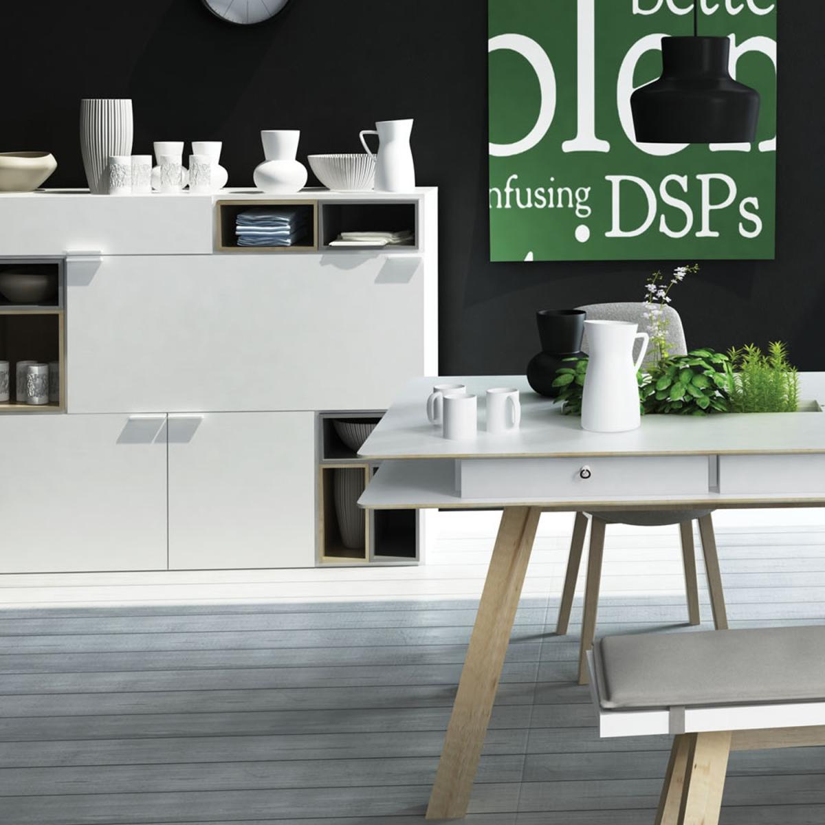 The 4 You Storage Cabinet with 2 Cupboards and Drawer, in white, is part of an exceptional range of cross purpose furniture from Vox - a brand who sure know how to design and manufacture functional furniture that does not compromise on style. Grace your dining room,. Kitchen. Or home study with this incredibly handy piece of furniture, perfect for creating a bar cabinet or storing away anything from crockery to stationery. Minimalisitc and asymmetric in design, it's fresh white finish will compliment any home interior, team up with other 4 You items to create a contemporary Scandi feel in your home. With matching storage boxes available separately, create a feature with the extra shelving compartments. Constructed from laminated board to the highest standard, this has been designed by experts. For you!.