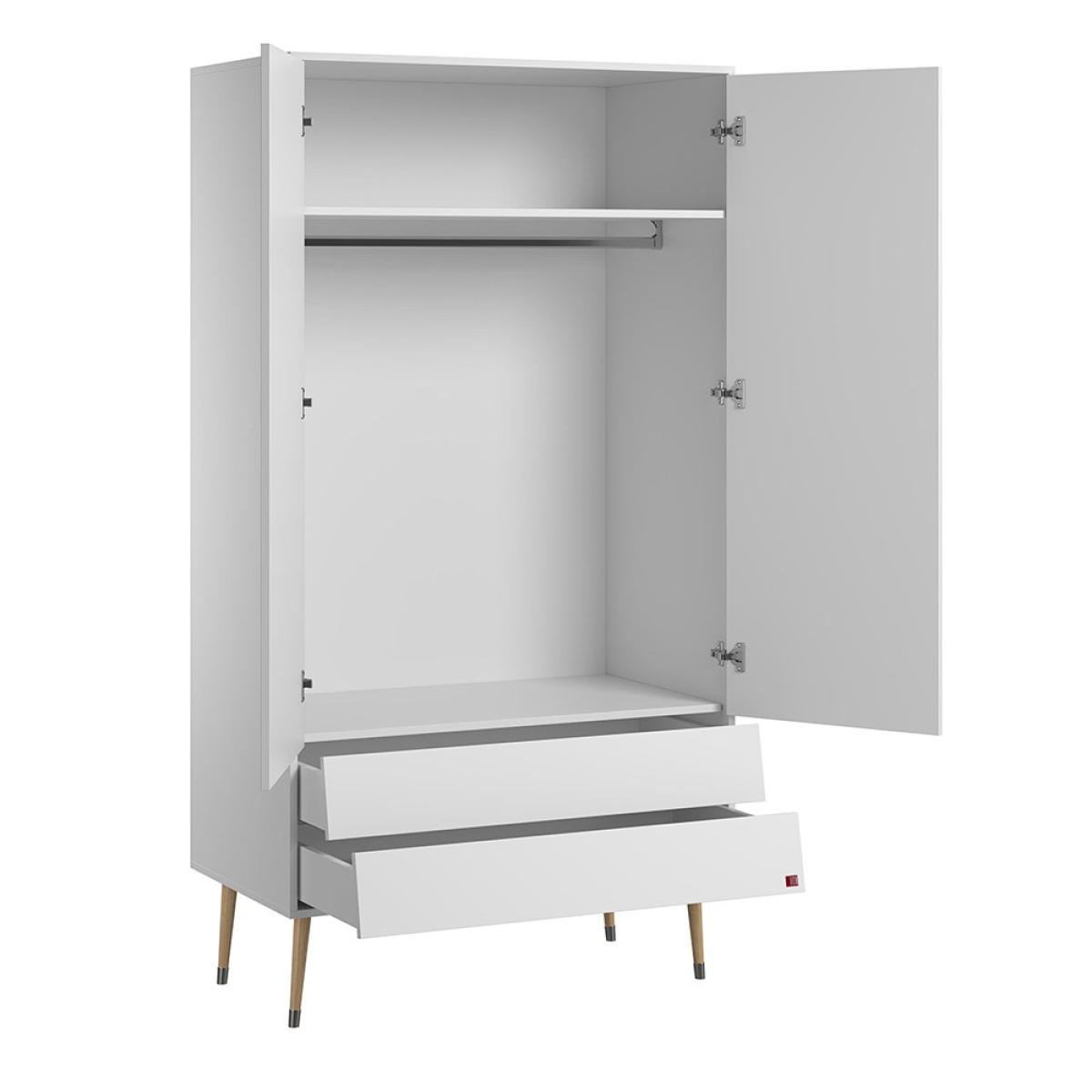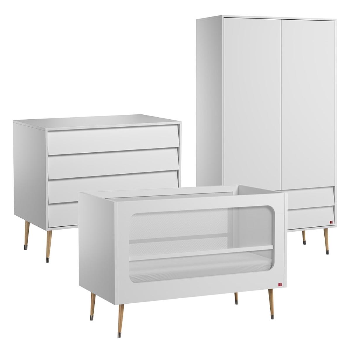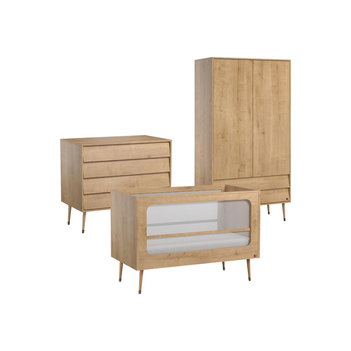 The retro, Scandi design of the Vox Bosque Baby Cot Bed 3 Piece Nursery Set will fit perfectly into any nursery theme you decide on. This beautiful set comprises of a cot bed, perfect for your little one to get cosy and comfortable in, and when old enough the cot can be transformed into a toddler bed. A well crafted set of 4 drawers, so bundles of storage! Ideal for all of those newborn essentials. There is also the option to add a changing unit to the top of the draws and when no longer needed, can be removed. Leaving you with a piece of furniture that will see your child through many more years. And last but by no means least, a double wardrobe with plenty of space to store all of those adorable outfits. With 2 drawers to the base and internal hanging rail and shelf, you will never be short of space for all of those clothes.