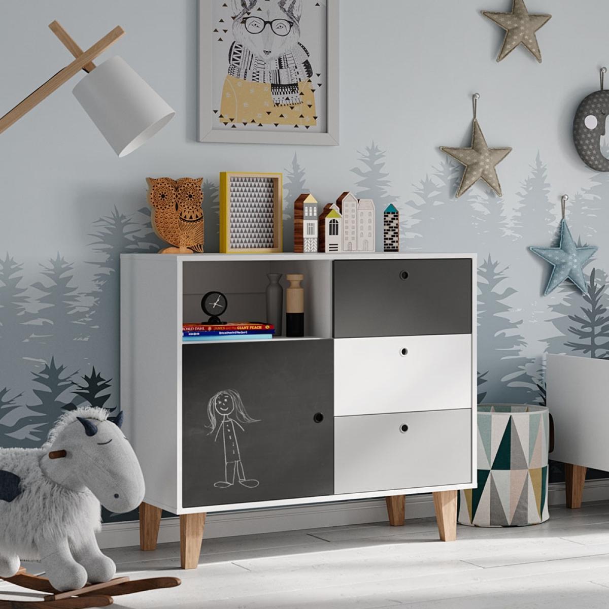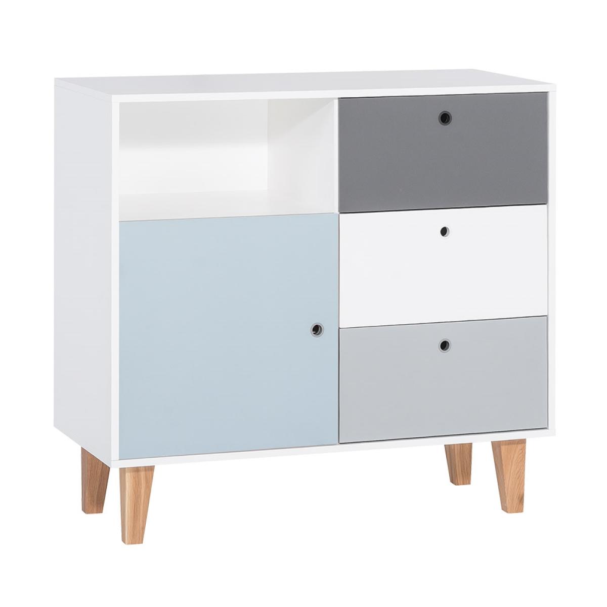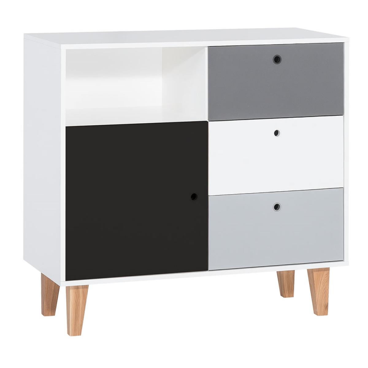 Add a contemporary feel to your little one's nursery with the Concept Nursery Dresser from Vox. The three large drawers and shelving offer up plenty of storage to keep their adorable outfits and with a cabinet and shelves it will be ideal for keeping those essentials close by. Plus, with the optional changing top you can create the ultimate nappy changing station! Its simple colour palette of grey and white will bring a touch of Scandinavian style to any room whilst the coloured panel is sure to inject a bit of fun into your interior. Available in a range of colours, there will be the perfect choice to welcome your newborn into the world.