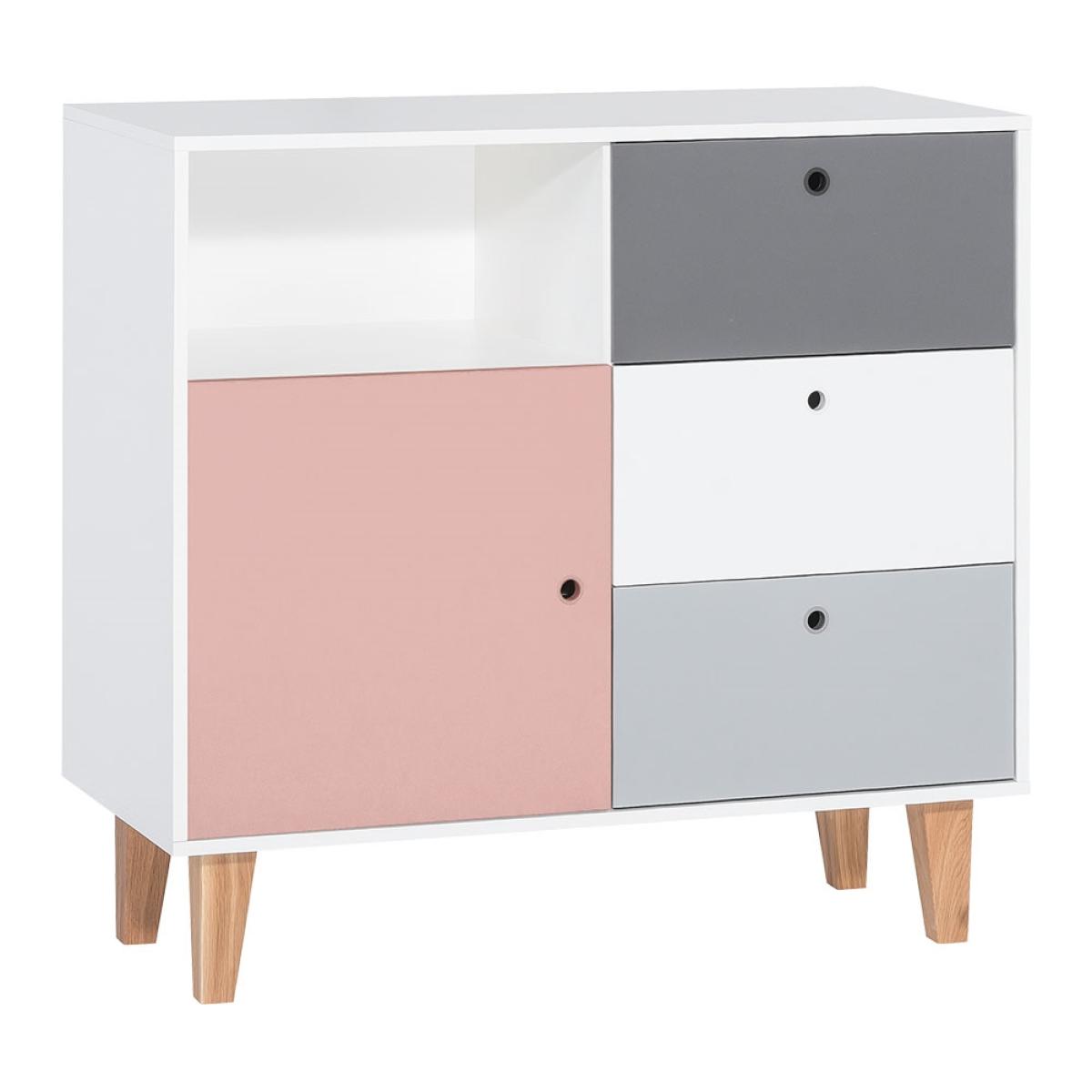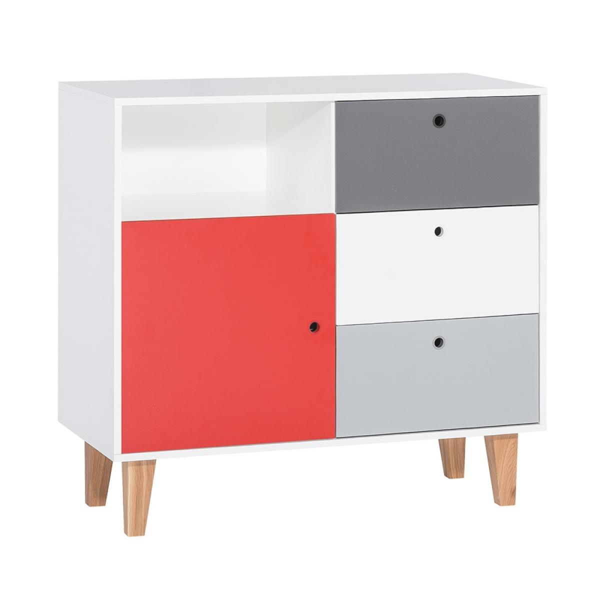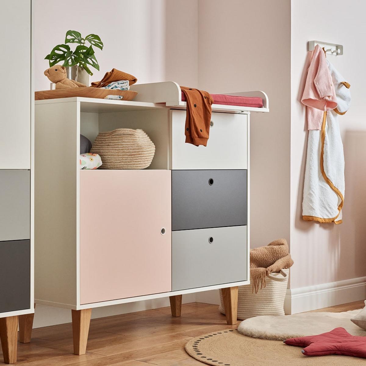 Add a contemporary feel to your little one's nursery with the Concept Nursery Dresser from Vox. The three large drawers and shelving offer up plenty of storage to keep their adorable outfits and with a cabinet and shelves it will be ideal for keeping those essentials close by. Plus, with the optional changing top you can create the ultimate nappy changing station! Its simple colour palette of grey and white will bring a touch of Scandinavian style to any room whilst the coloured panel is sure to inject a bit of fun into your interior. Available in a range of colours, there will be the perfect choice to welcome your newborn into the world.