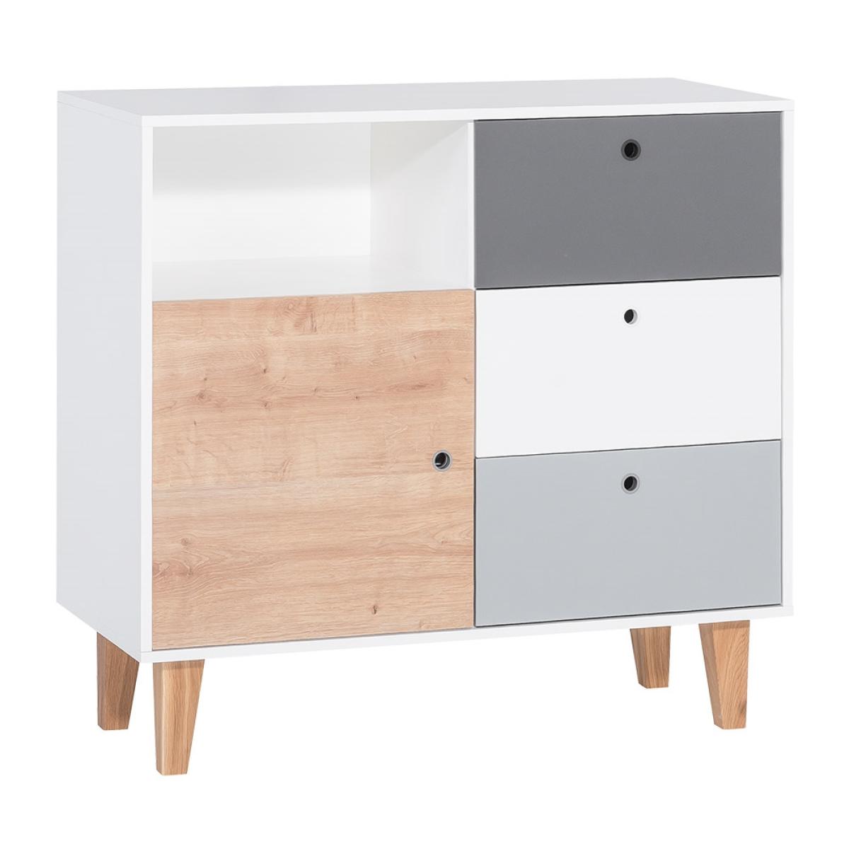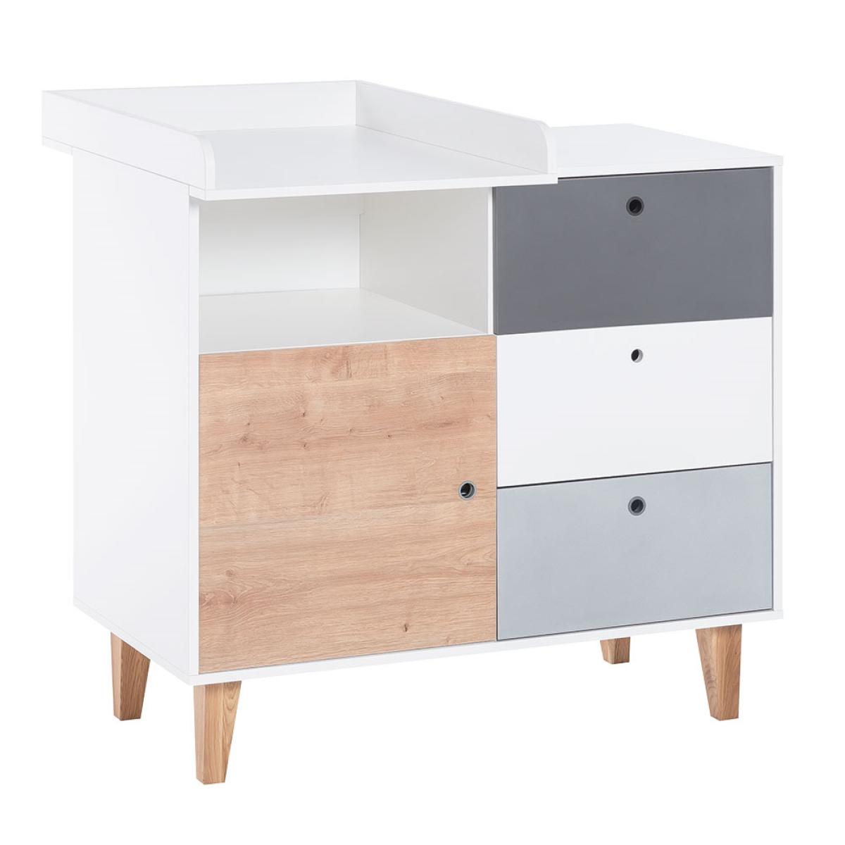 Add a contemporary feel to your little one's nursery with the Concept Nursery Dresser from Vox. The three large drawers and shelving offer up plenty of storage to keep their adorable outfits and with a cabinet and shelves it will be ideal for keeping those essentials close by. Plus, with the optional changing top you can create the ultimate nappy changing station! Its simple colour palette of grey and white will bring a touch of Scandinavian style to any room whilst the coloured panel is sure to inject a bit of fun into your interior. Available in a range of colours, there will be the perfect choice to welcome your newborn into the world.