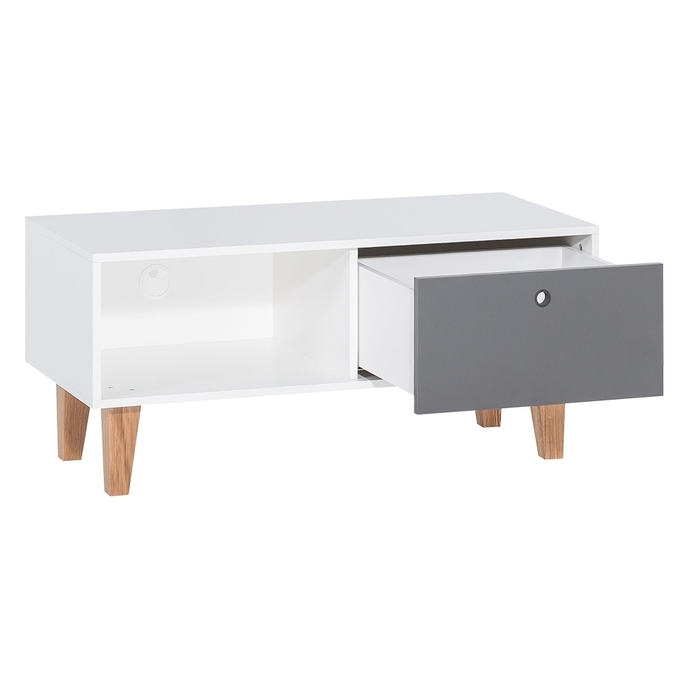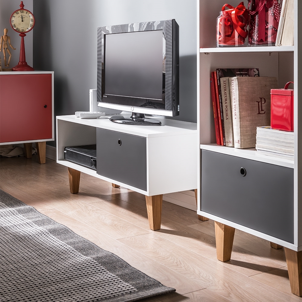 Store all those gadgets and gizmos in style with the Concept TV Stand in White & Grey from Vox and keep those trailing wires and cables neatly hidden! No more losing that remote or that games controller when you've got this stunning unit to put it all in! Its simple lines and clean design will add a touch of sophistication and a dash of Scandinavian style wherever it is placed. With a large drawer and large open compartment including an opening at the back for those pesky wires, your home entertainment system will be spick and span!.